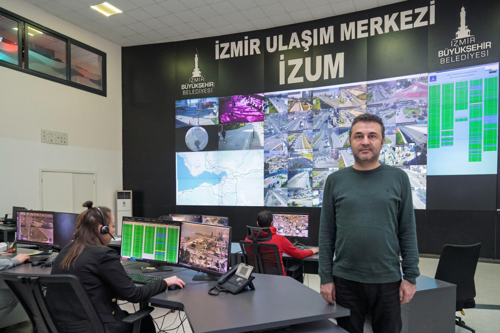 Akıllı Trafik Yönetim Sistemi’nin tüm kent genelinde hizmet verdiğini belirten Ulaşım Dairesi Başkan Vekili Özgür Yalçınkaya, “İzmir genelinde belediyemizin işletmesinde 609 kavşağımız var. Bunlardan 479’u akıllı trafik sistemine dahil, 412’sine de uzaktan erişimimiz var. Şehrimizdeki bu kavşakları 7 gün 24 saat işletiyor ve çalıştırıyoruz.