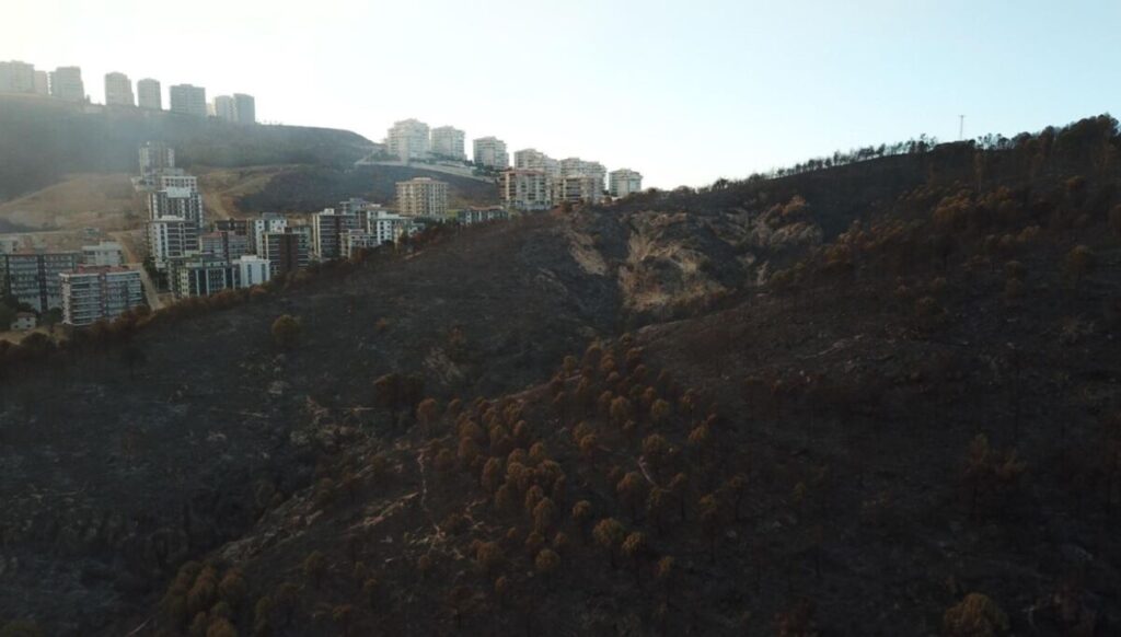 Karşıyaka ilçesi Yamanlar Dağı’nda 15 Ağustos’ta saat 21.00 sıralarında çıkan yangın, rüzgarın da etkisiyle geniş bir alana yayıldı.
