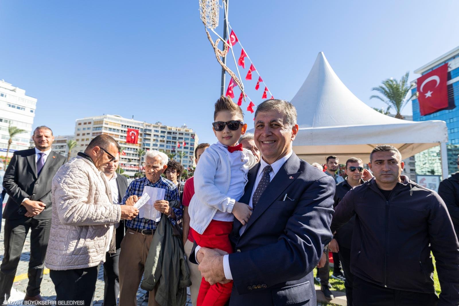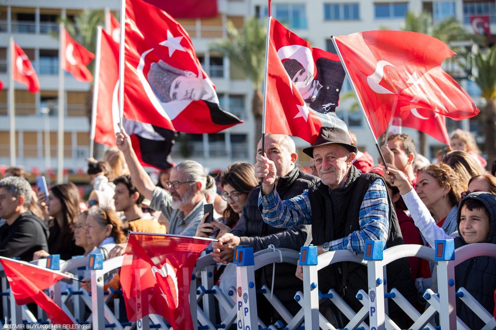 İzmirliler, Cumhuriyet Bayramı’nı her yıl olduğu gibi Cumhuriyet Meydanı’nda gururla kutladı. 7’den 70’e çok sayıda yurttaşın ellerinde Türk bayraklarıyla katıldığı kutlamada, İzmir Büyükşehir Belediye Başkanı Dr. Cemil Tugay ve eşi Öznur Tugay da Cumhuriyet coşkusuna ortak oldu.