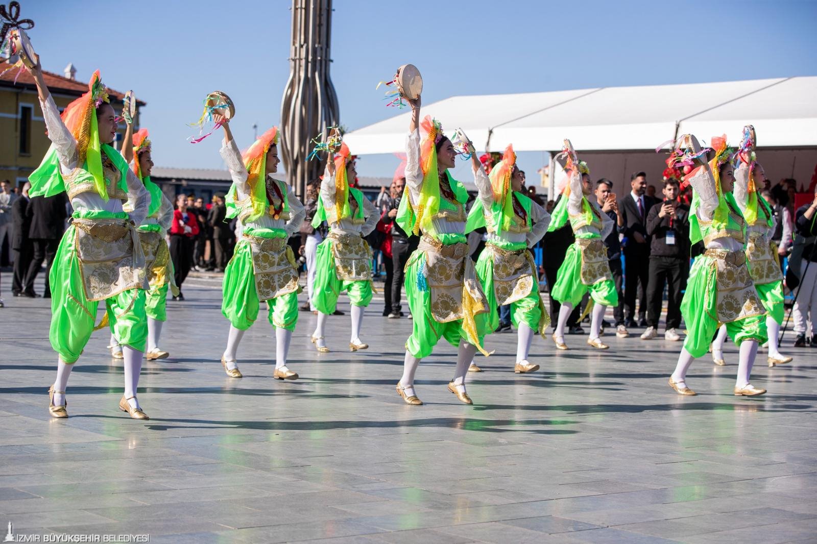 Kutlamalarda, Ege Üniversitesi Halk Dansları Topluluğu, İzmir Yüksek Teknoloji Enstitüsü Halk Oyunları Ekibi, Milli Eğitim Müdürlüğü’ne bağlı okulların halk oyunları ekipleri renkli gösteriler düzenlendi. Törende öğrenciler günün anlam ve önemine ilişkin şiirler de okundu.