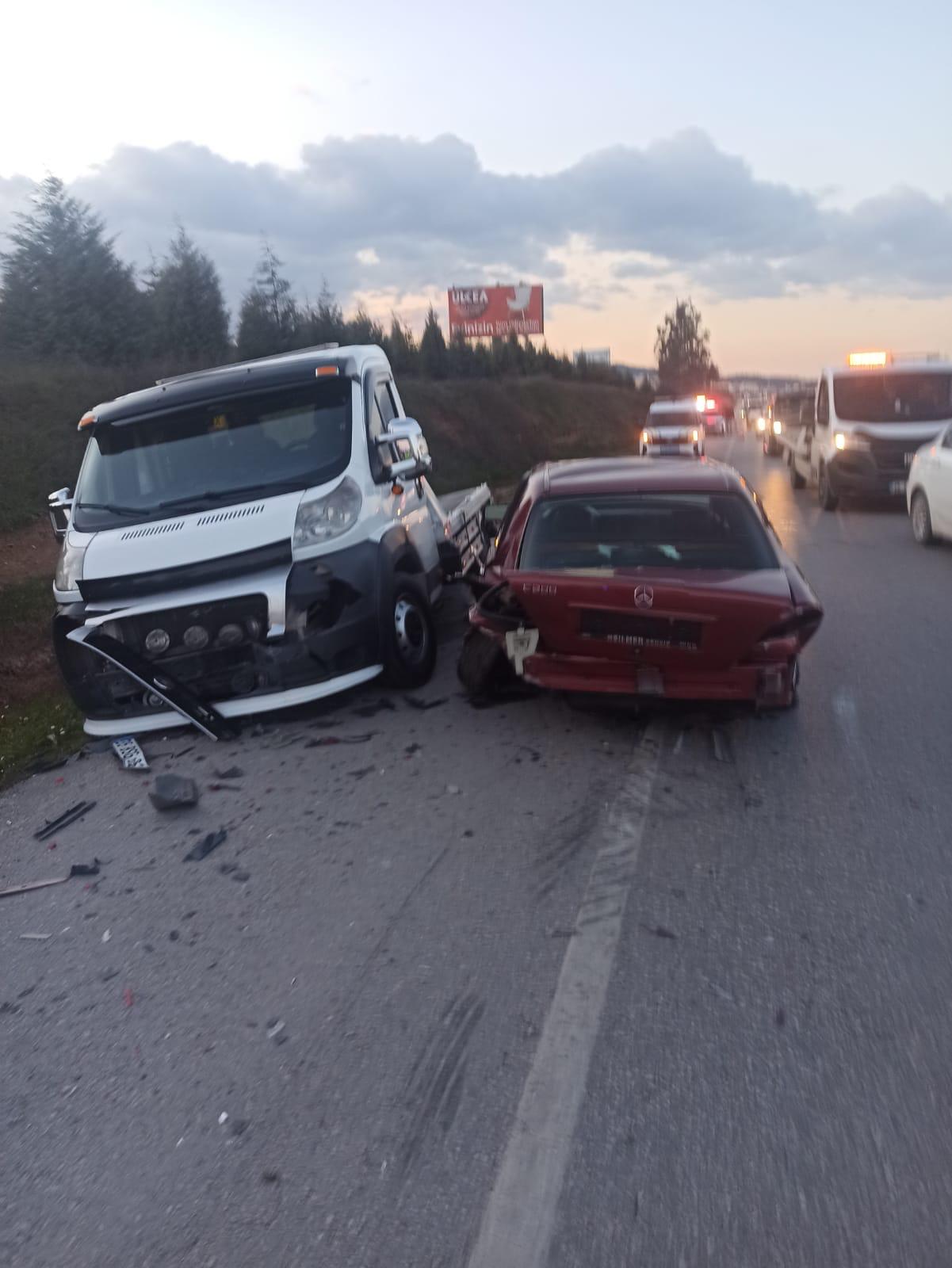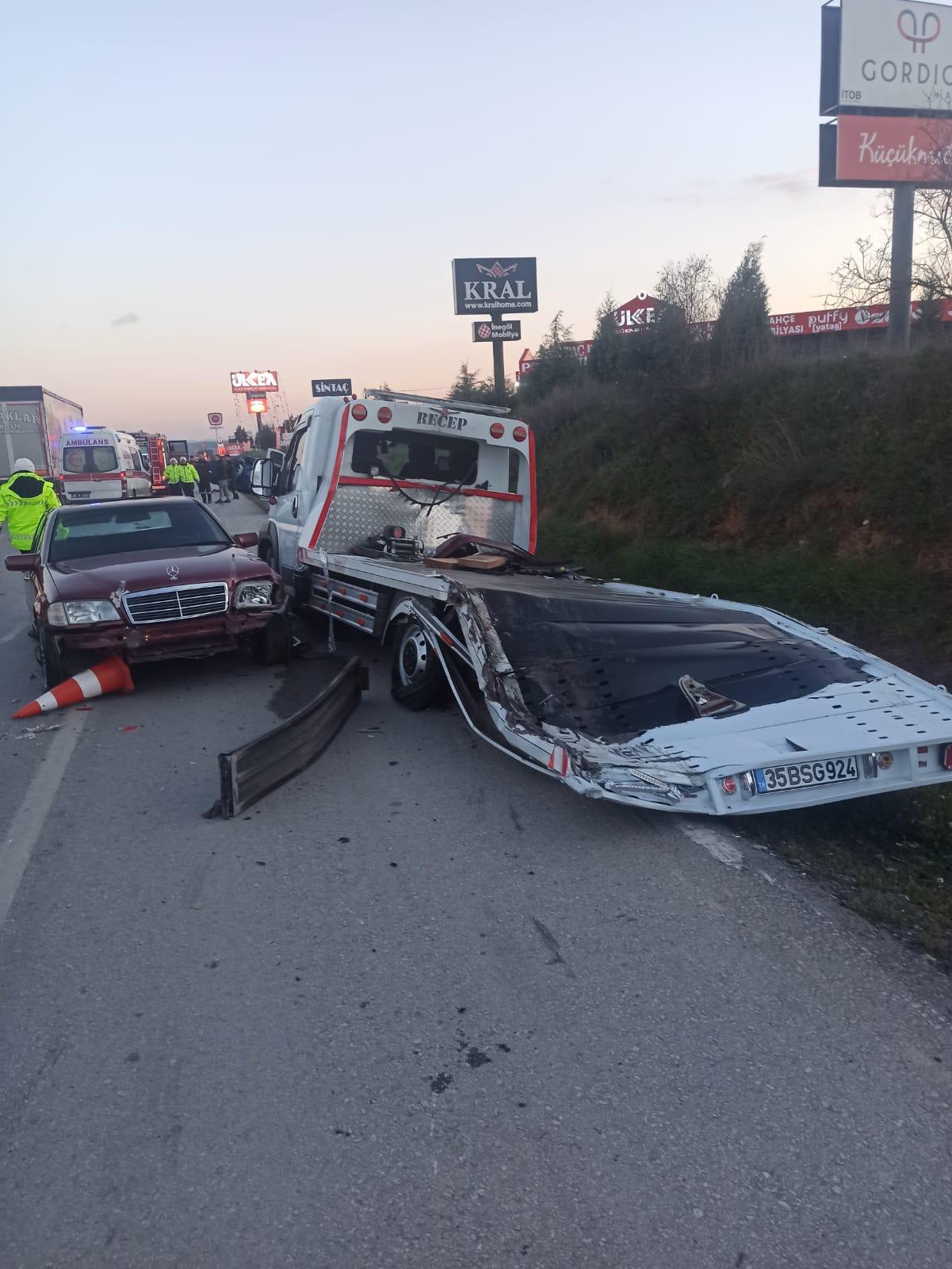 Kazaya karışan çekicilerden birinin üzerinde otomobil de bulunuyordu. Çarpışmanın şiddetiyle araçlardan bazı parçalar yola saçıldı.