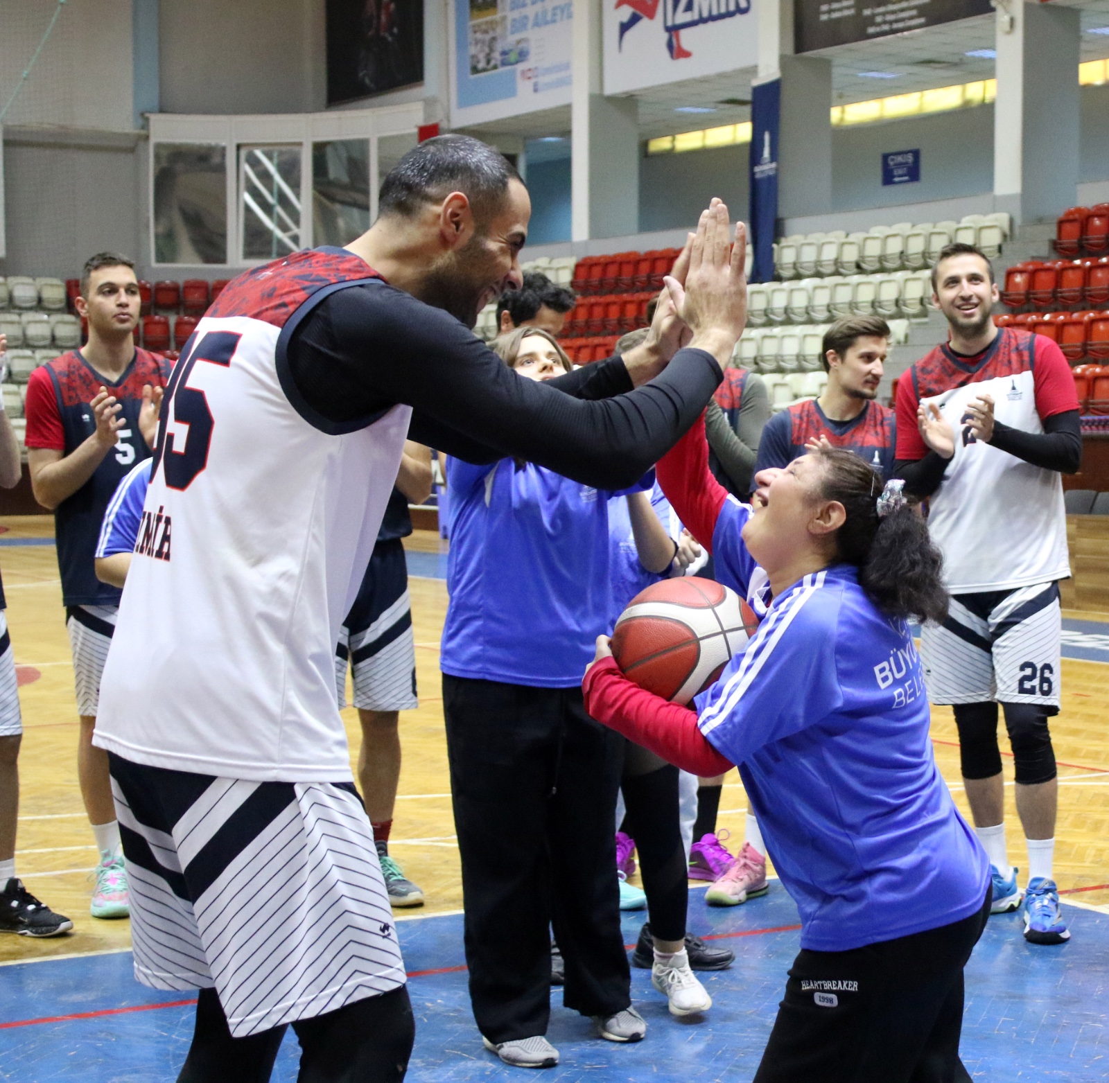 Türkiye Bölgesel Basketbol Ligi’nde bayrama lider giren İzmir Büyükşehir Belediyesi Erkek Basketbol Takımı oyuncuları Celal Atik Spor Salonu’ndaki antrenman öncesinde özel gereksinimli gençlerle hem basketbol oynadı hem de Ramazan Bayramı coşkusunu paylaştı.