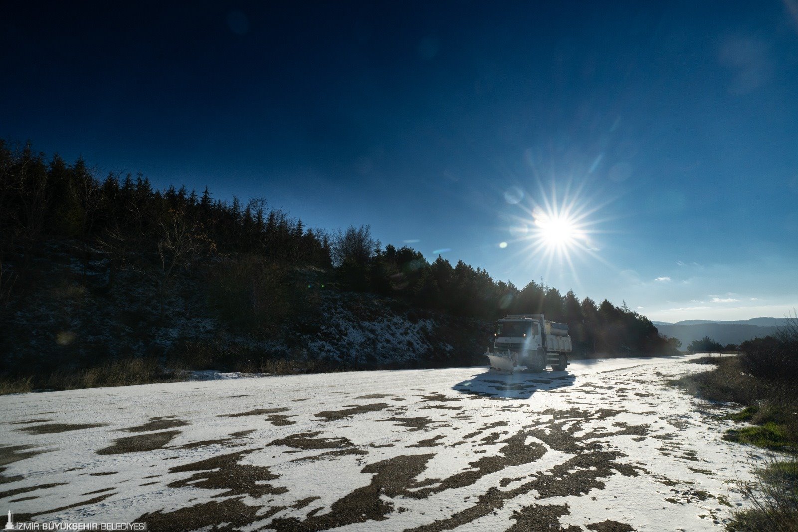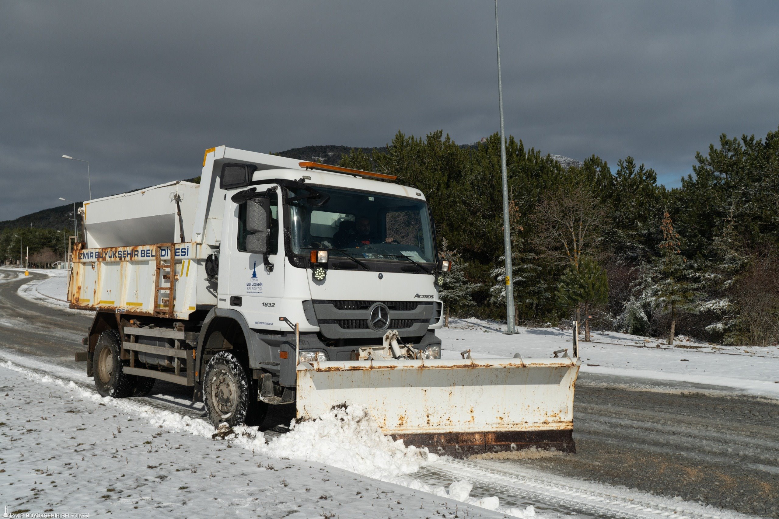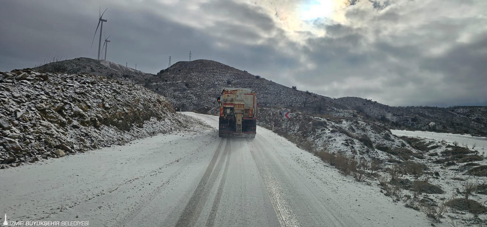 İzmir Büyükşehir Belediyesi karla mücadele ekipleri, başta Ödemiş, Tire, Beydağ ve Kemalpaşa olmak üzere karla kaplanan ve buzlanma görülen yollarda çalışma yürüttü.