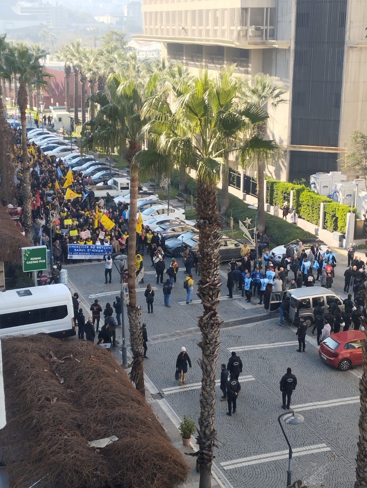 İzmir’de eğitimden sağlığa, bürodan ulaşıma kadar birçok farklı iş kolunda görev yapan kamu çalışanları, üretimden gelen güçlerini kullanarak bugün iş bıraktı. KESK’e bağlı 11 sendikanın katılımıyla gerçekleşen eylemde, Konak’taki SGK İl Müdürlüğü önü adeta miting alanına döndü. “Sefalet ücretine teslim olmayacağız” pankartları arkasında toplanan yüzlerce memur, ağırlaşan yaşam koşullarına karşı acil eylem planı çağrısı yaptı.