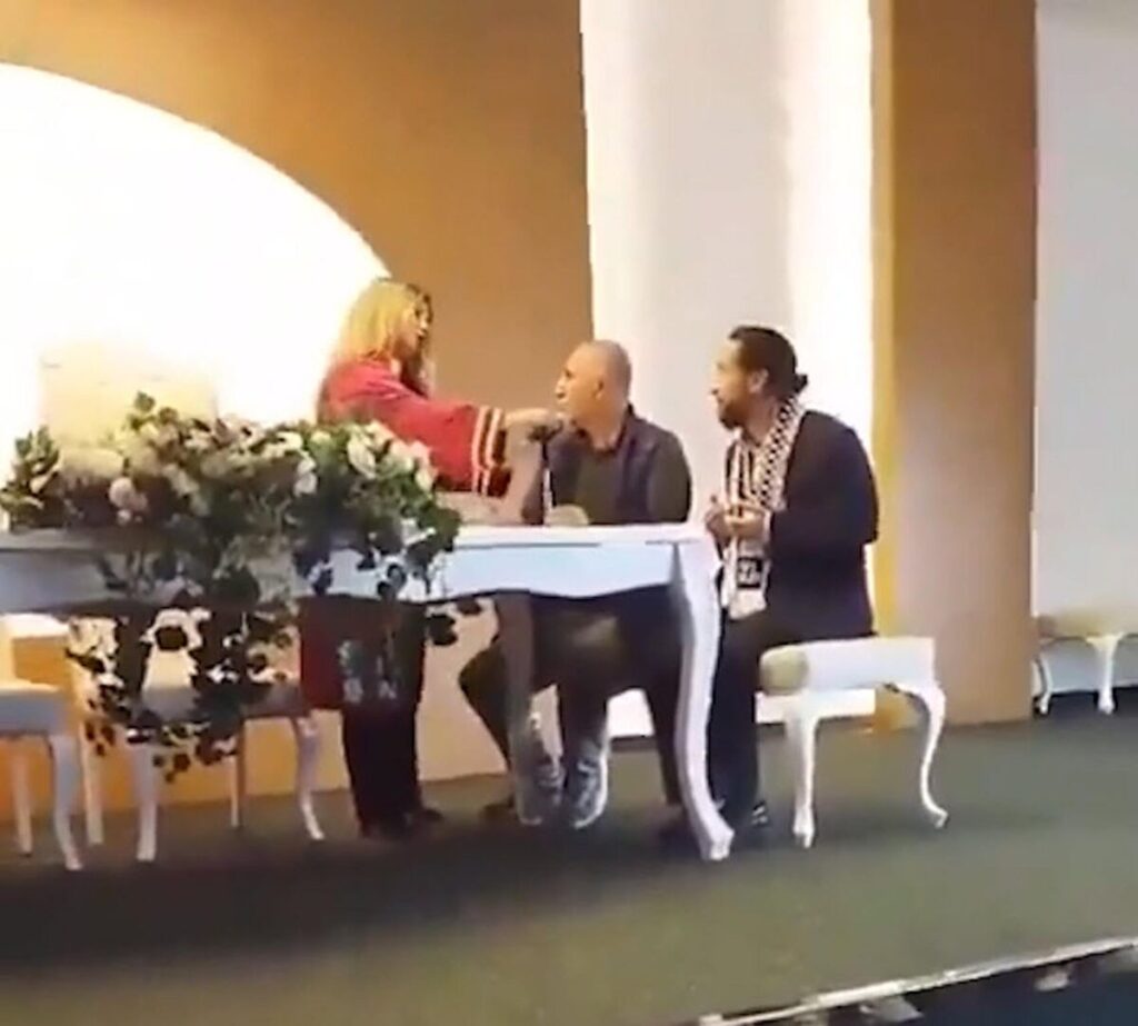 Karşıyaka Belediyesi Zübeyde Hanım Nikah Sarayı’nda tören düzenlendi. Nikah töreni öncesi bir kişi, mikrofonu eline alarak dua etmek istedi. Bu sırada nikah memuru, “Beyefendi, burası bir resmi daire. Burada mikrofona izin vermiyoruz, resmi nikah kıyıyoruz. Evde yapabilirsiniz” diyerek, engelledi. Mikrofon elinden alınan hoca, yine de duasını etti. Sosyal medyada paylaşılan görüntü tartışma yarattı.