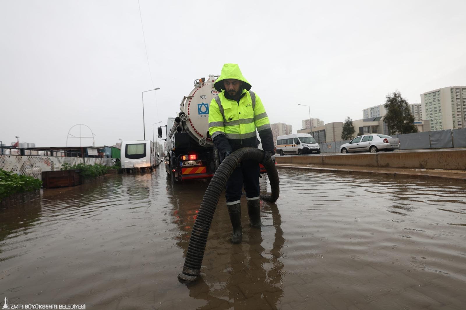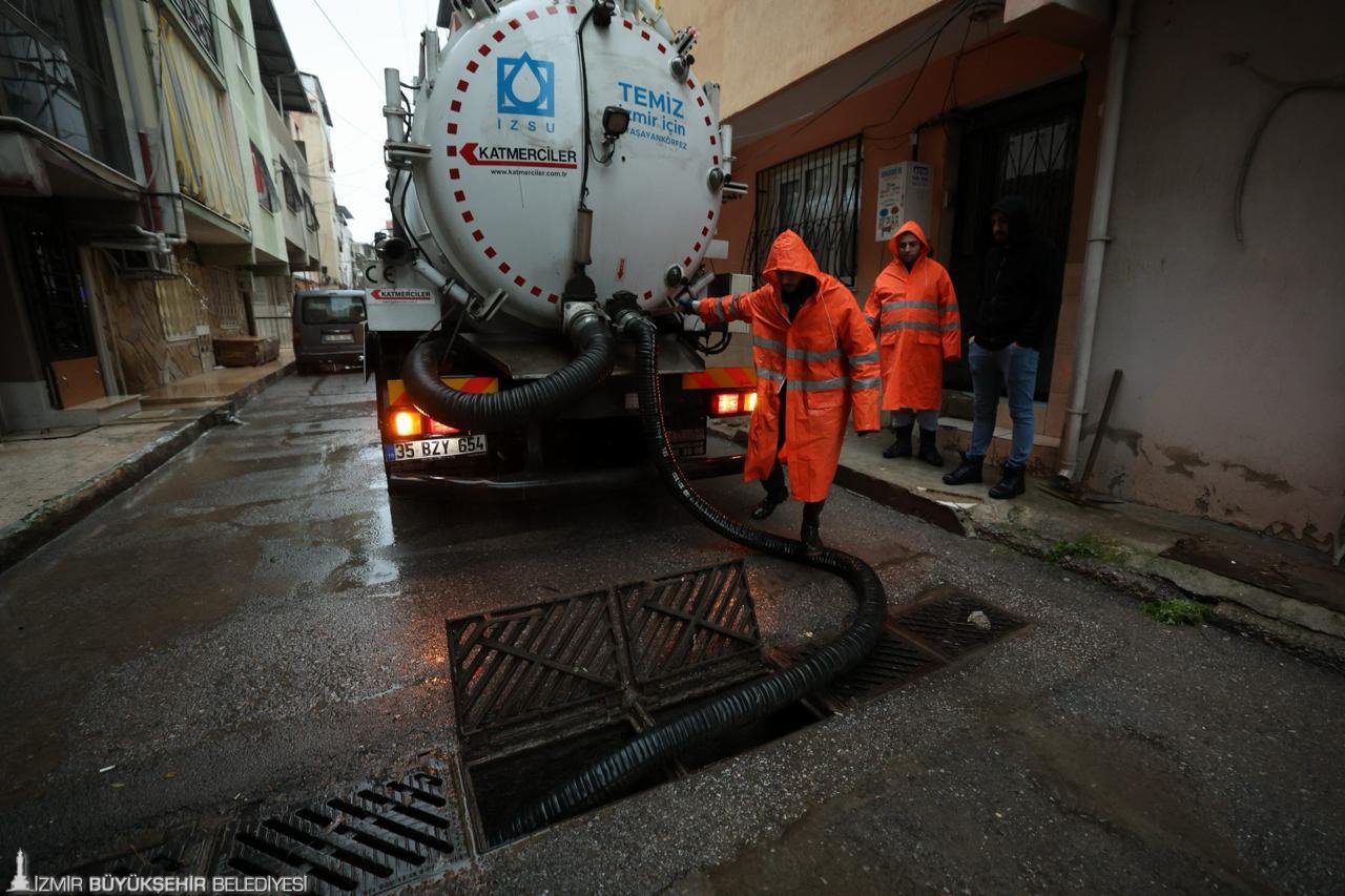Meteoroloji Genel Müdürlüğü tarafından turuncu kodlu kuvvetli yağış uyarısı yapılan İzmir’de, gün boyunca etkili olan sağanak yağışlar nedeniyle Büyükşehir Belediyesi tüm birimleriyle teyakkuz halinde sahaya çıktı. Kent genelinde yol ve kavşaklarda su birikmeleri ile ev ve iş yerlerine yönelik su baskını ihbarları alınırken, ekipler ihbarlara eş zamanlı müdahale etti.