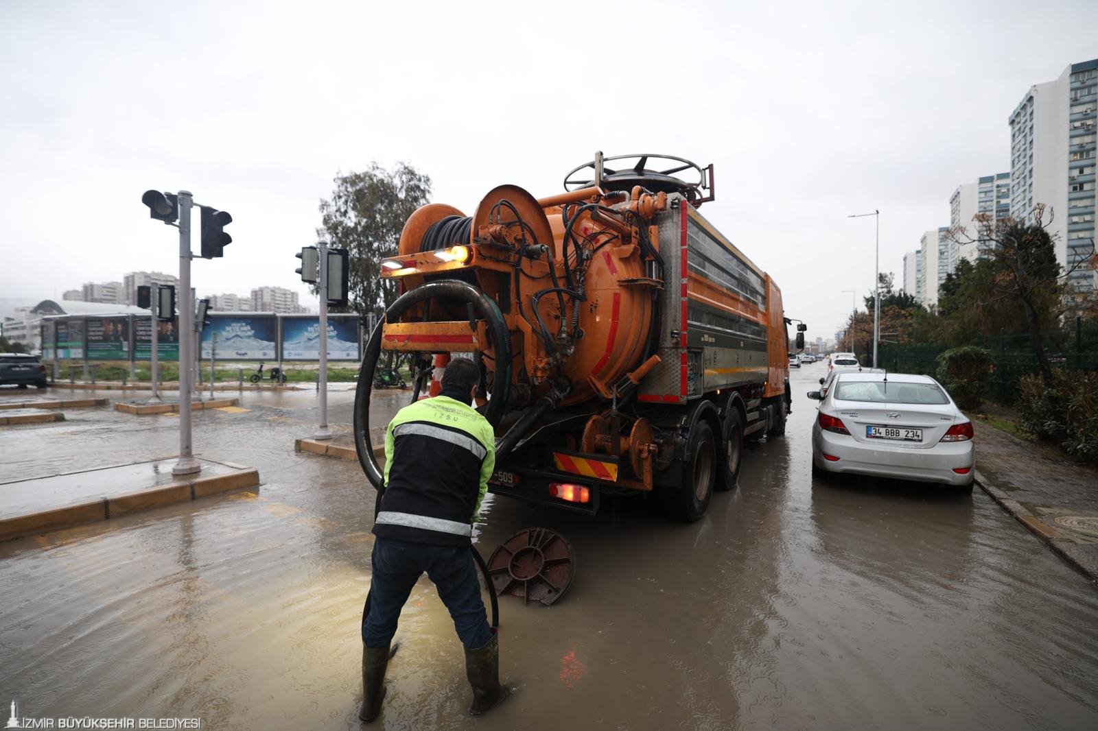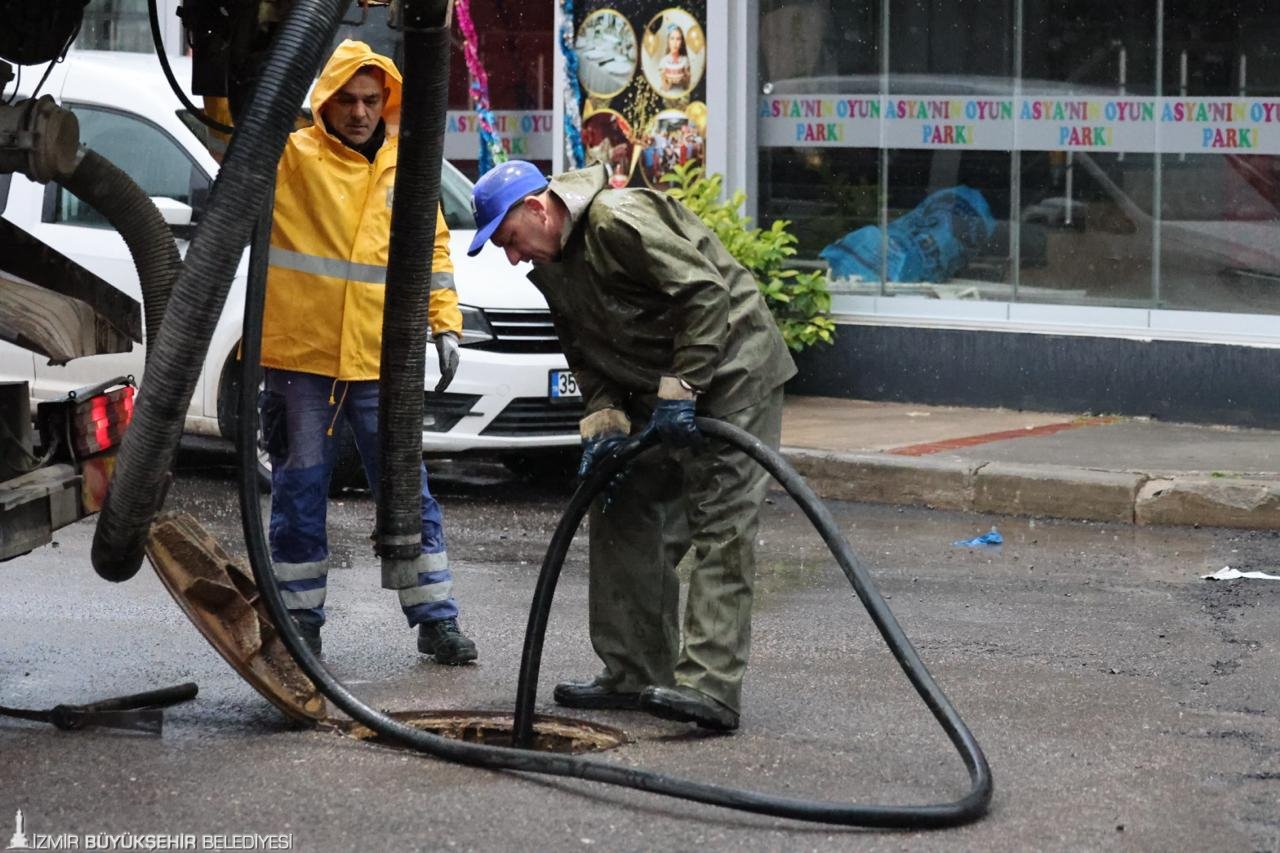Kentte yaşamın aksamaması için İzmir Büyükşehir Belediyesi tüm birimleriyle sahada çalışmaya devam ediyor. Kentte gün boyu olası su baskınları ve trafik yoğunluğuna karşı kentin tüm kritik noktalarında ekipler görevlendirilerek ulaşımın güvenli şekilde sürmesi sağlandı.