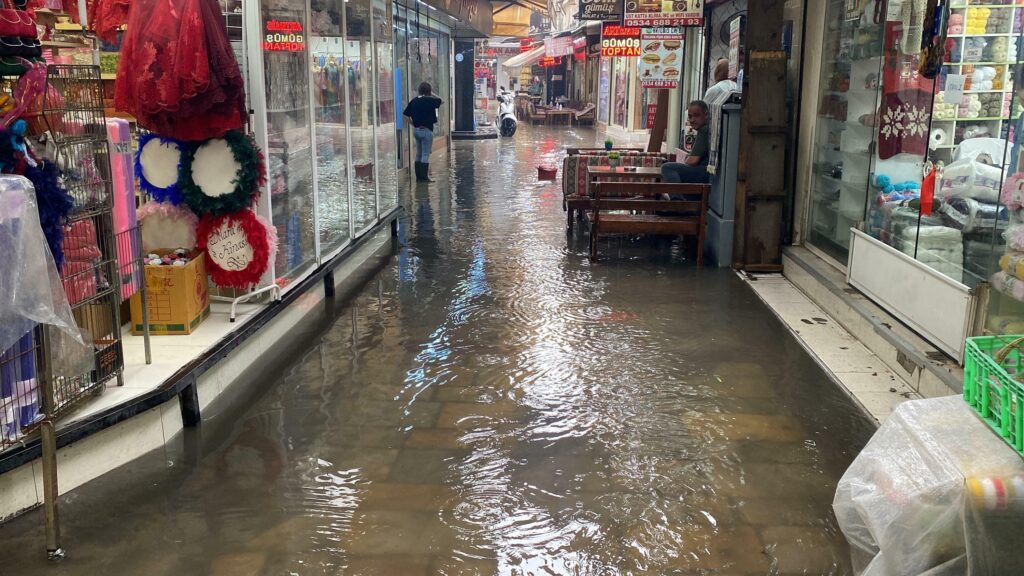 Ayrıca kuvvetli yağışın etkisini artırması üzerine tarihi Kemeraltı Çarşısı’nı da su bastı. Çarşının birçok sokağında su birikintileri oluşurken, iş yeri sahipleri kendi imkanlarıyla suyu tahliye etmeye çalıştı. Yağmura hazırlıksız yakalanan vatandaşlar da saçak altlarında ve kapalı mekanlarda yağışın dinmesini bekledi.