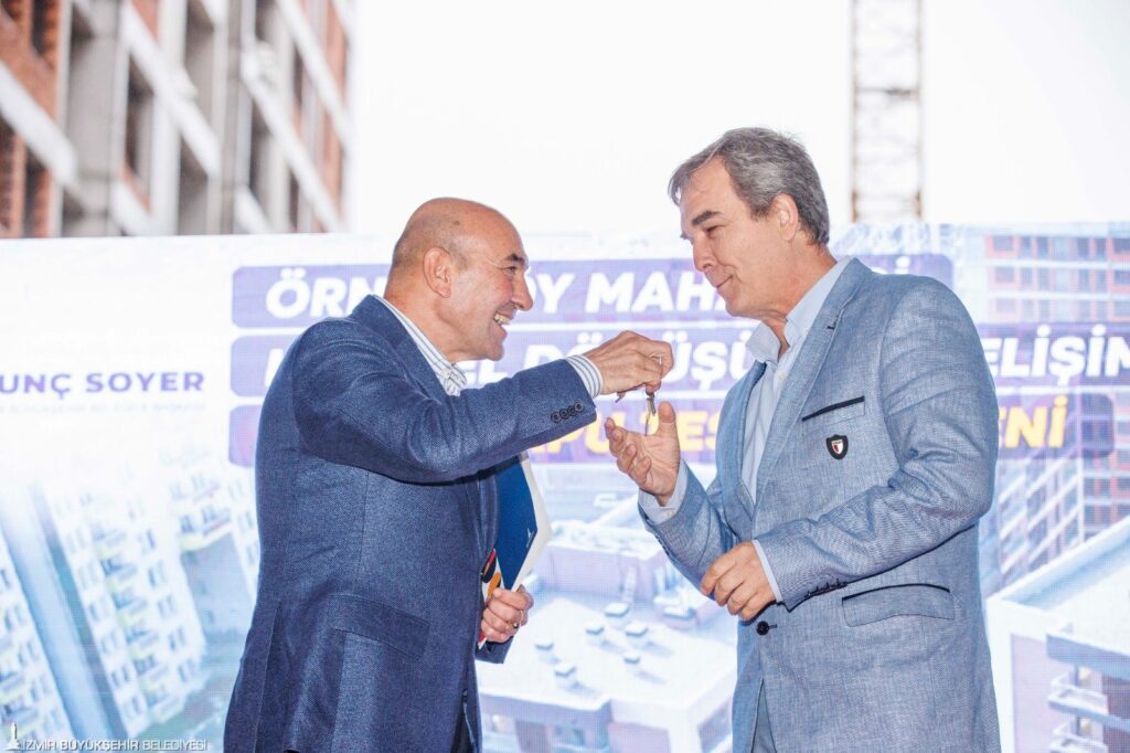 İzmir Büyükşehir Belediyesi’nin garantörlüğünde, yerinde ve yüzde yüz uzlaşı ilkeleri çerçevesinde Türkiye’ye örnek olacak şekilde hayata geçirdiği kentsel dönüşüm çalışmaları tüm hızıyla sürdürülüyor. 6 bölgede toplam 248 hektar alanda devam eden dönüşüm projelerinin bir etabında daha tapu sevinci yaşandı. Karşıyaka Örnekköy’de tamamlanan ikinci etabın hak sahipleri tapularını İzmir Büyükşehir Belediye Başkanı Tunç Soyer’in elinden aldı. Törene Cumhuriyet Halk Partisi (CHP) İzmir İl Başkanı Şenol Aslanoğlu, belediye meclisi üyeleri, siyasi parti temsilcileri, bürokratlar ve hak sahipleri katıldı.