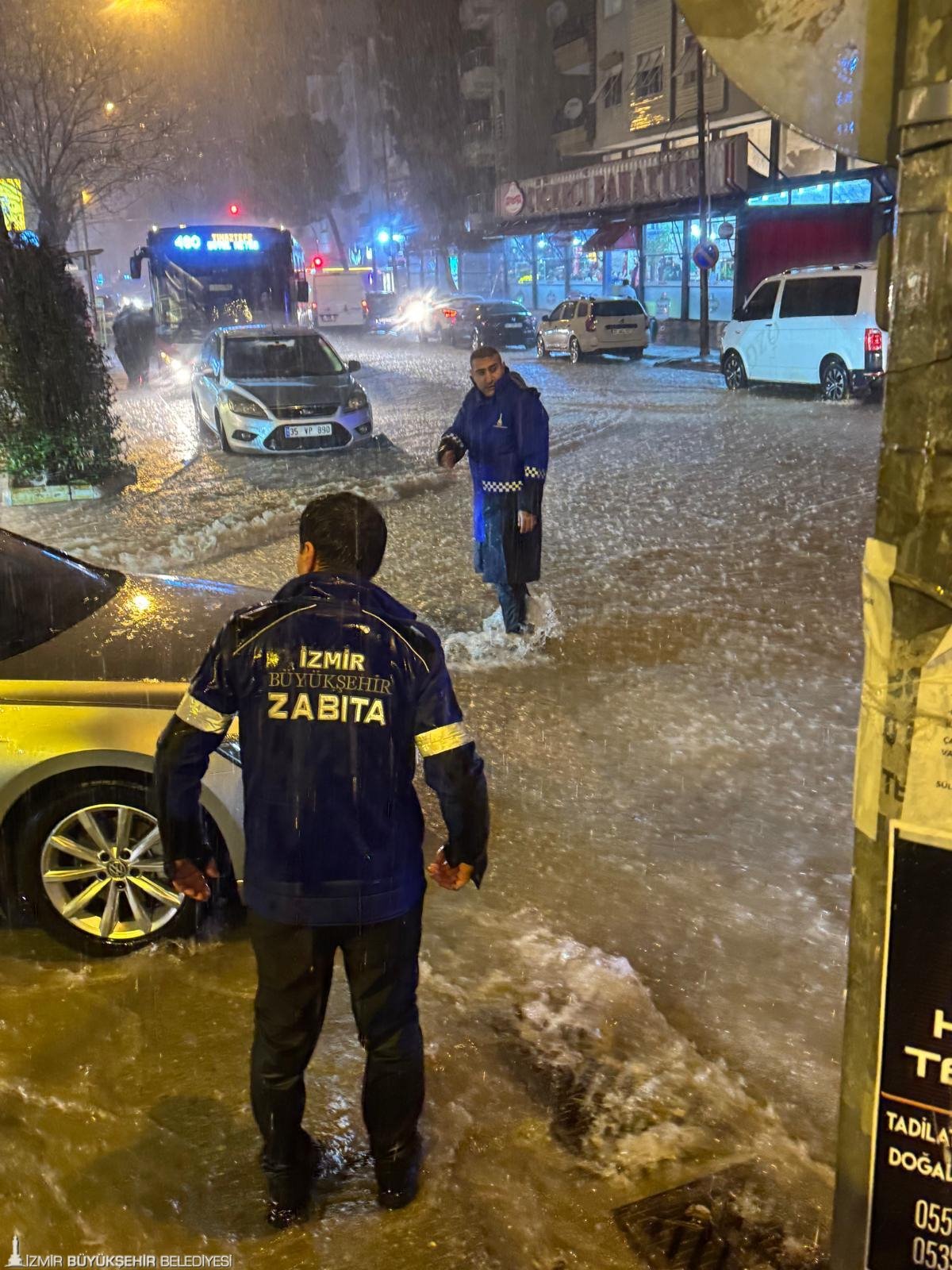 İzmir Büyükşehir Belediyesi, dün akşam saatlerinde başlayan ve kent genelinde etkili olan sağanak yağış nedeniyle tüm birimleriyle sahada görev yaptı.