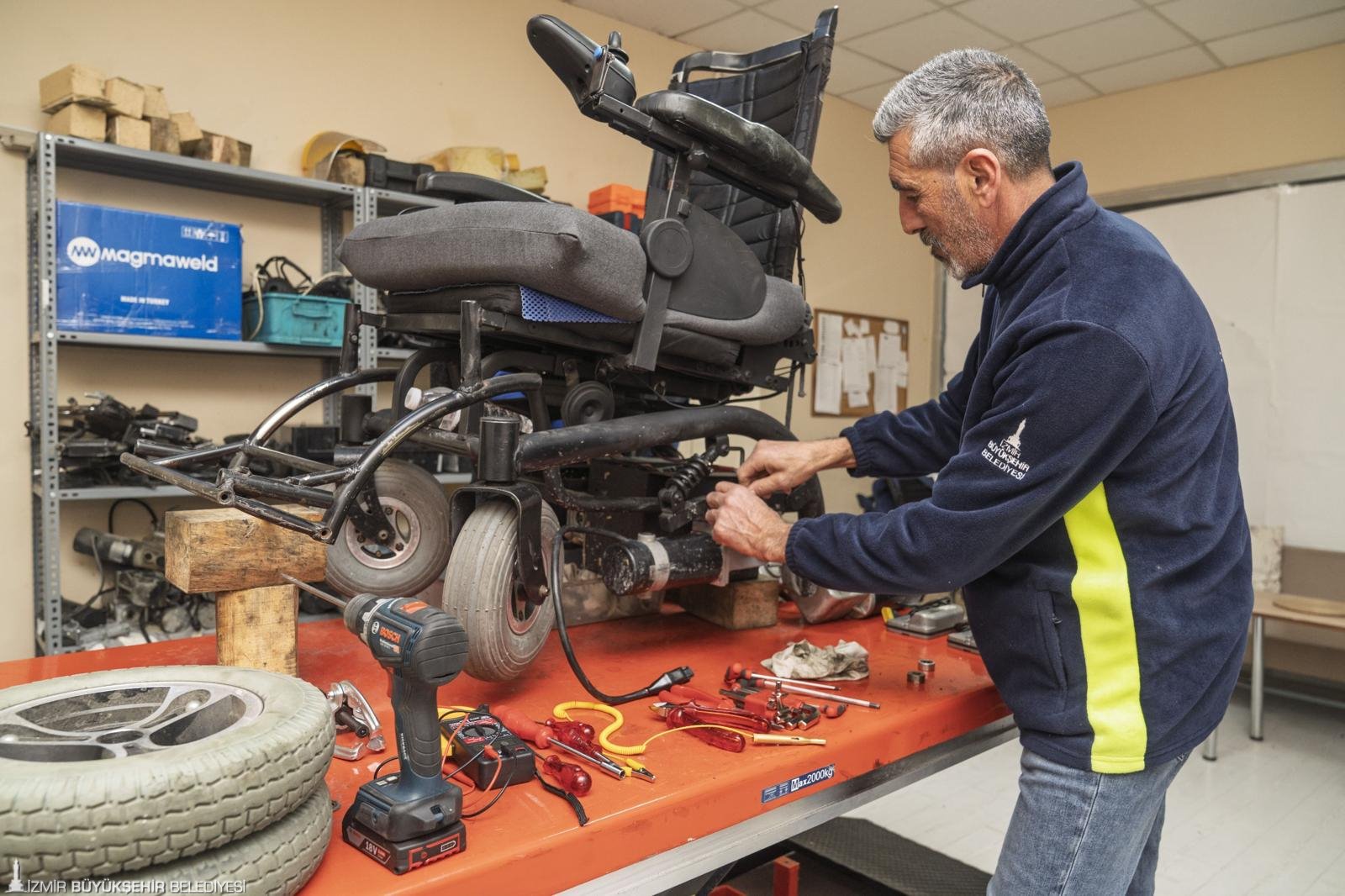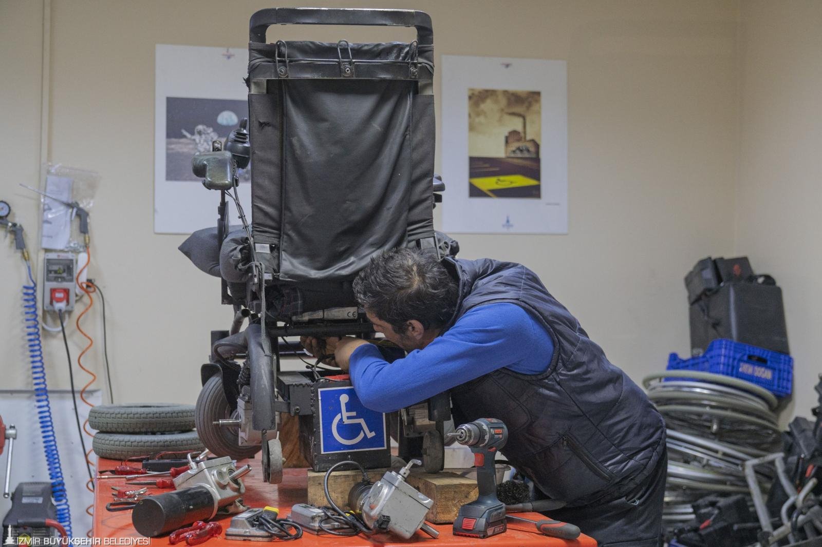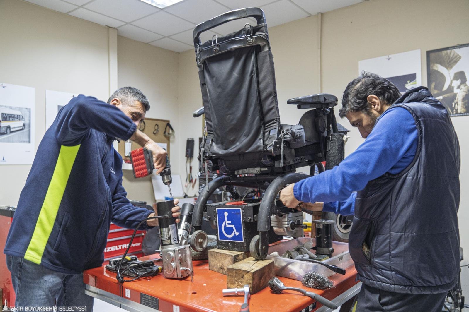 Tekerlekli sandalyesi bozulan engelli yurttaşlar için İzmir Büyükşehir Belediyesi adeta can simidi oldu.