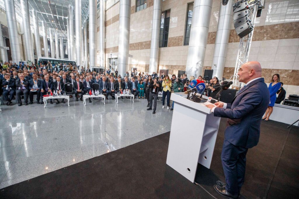 Açılış töreninde konuşan İzmir Büyükşehir Belediye Başkanı Tunç Soyer, İzmir’in 8 bin 500 yıllık tarihinin önemine vurgu yaparak, dört yıl önce kentin benzersiz zenginliğini dünyaya anlatmaya söz verdiklerini hatırlattı. Turizmin şehrin refahını büyütmedeki en önemli sektör olduğuna dikkat Başkan Soyer, “Pandemi sonrasında dijital turizm altyapısını kuran ilk şehir biz olduk. İzmir’in 2 bin 500’den fazla destinasyonunu Visit İzmir mobil uygulamasında bir araya getirdik. Türkiye’nin ilk dijital turizm ansiklopedisi diyebilirsiniz. Bir diğer önceliğimiz, İzmir’e yapılan doğrudan seferlerdi. Bu konuda İzmir’e uçuş düzenleyen havayolu şirketleri ile Direct İzmir programını başlattık. Artık İzmir’den Venedik, Barselona, Milano gibi dünya turizmine öncülük eden şehirlere direkt uçuş imkanı bulunuyor. İzmir turizmini hak ettiği noktaya ulaştırma hedefimiz doğrultusunda, altı yıldır İzmir’e uğramayan kruvaziyer gemileri yeniden İzmir Limanı’nda ağırlamaya başladık. 2022’den bu yana 49 kruvaziyer seferiyle toplam 69 bin turist İzmir’i ziyaret etti. İzmir’in liman kenti kimliğini daha da güçlendirmek amacıyla İZDENİZ şirketimiz İzmir -Midilli seferlerine başladı. 2024 yılında seferlerimizi üçe katlayacağız. 6 Nisan’da ise İDO ile beraber Sığacık – Samos gemi seferlerini de başlatıyoruz” dedi.