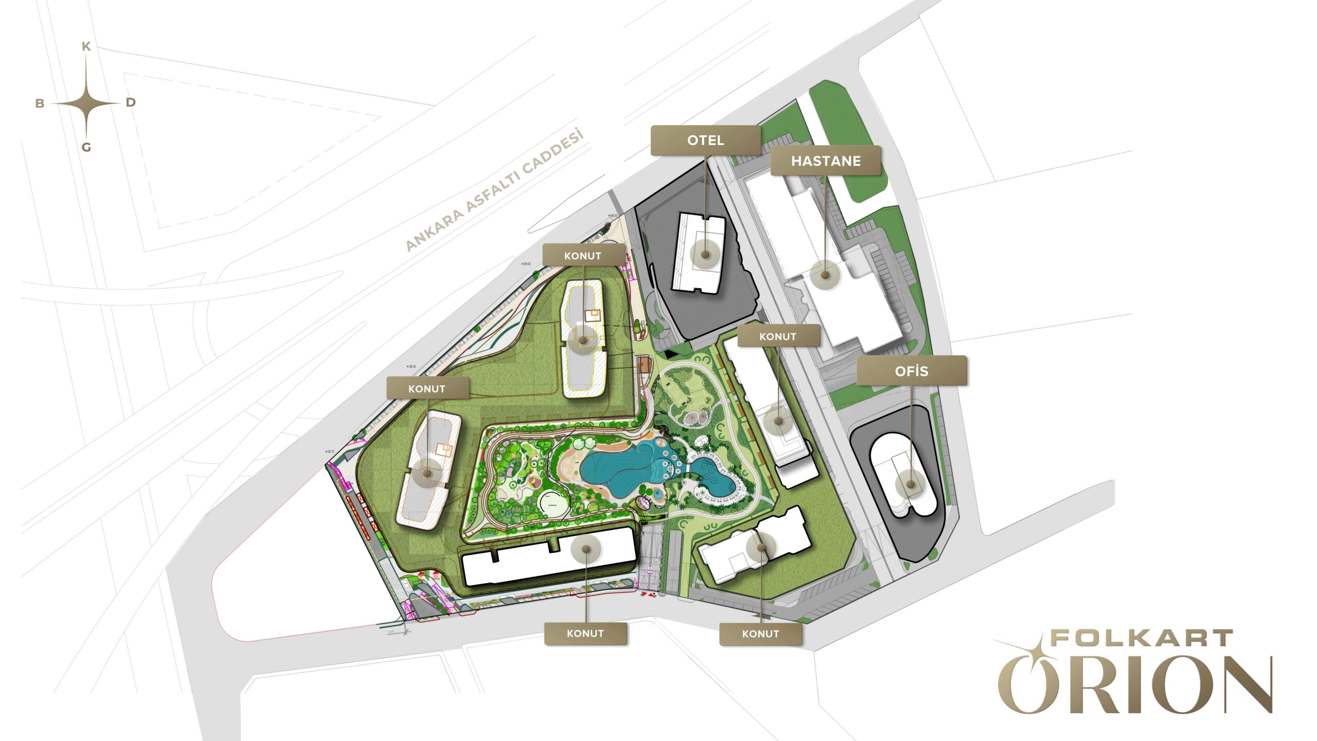 Dev ORİON Projesi’nin sınırlarında; farklı büyüklüklerde yaklaşık bin konut, Medical Park Hastanesi, beş yıldızlı bir otel, bu otele bağlı hizmet sunacak özel bir rezidans kulesi, geniş ticari alanlar, modern bir ofis kulesi bulunuyor.