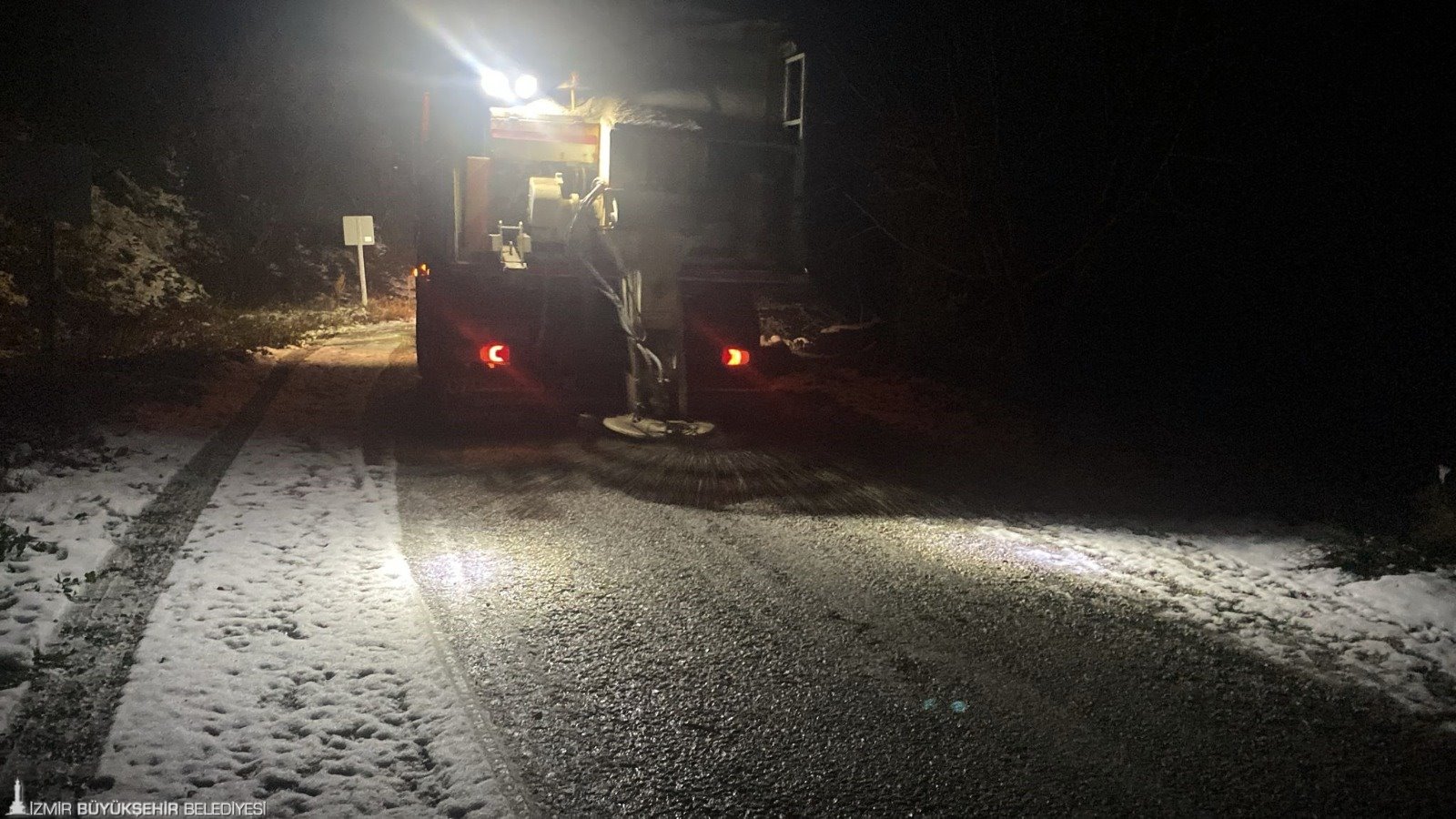 İzmir’in yüksek kesimlerde 7 gün 24 saat teyakkuzda olan İzmir Büyükşehir Belediyesi Yol Yapım, Bakım ve Onarım Dairesi Başkanlığı ekipleri, kar yağışı ve buzlanmanın olduğu noktalarda ulaşımın aksamaması için önlemler alarak olumsuzlukların önüne geçti.