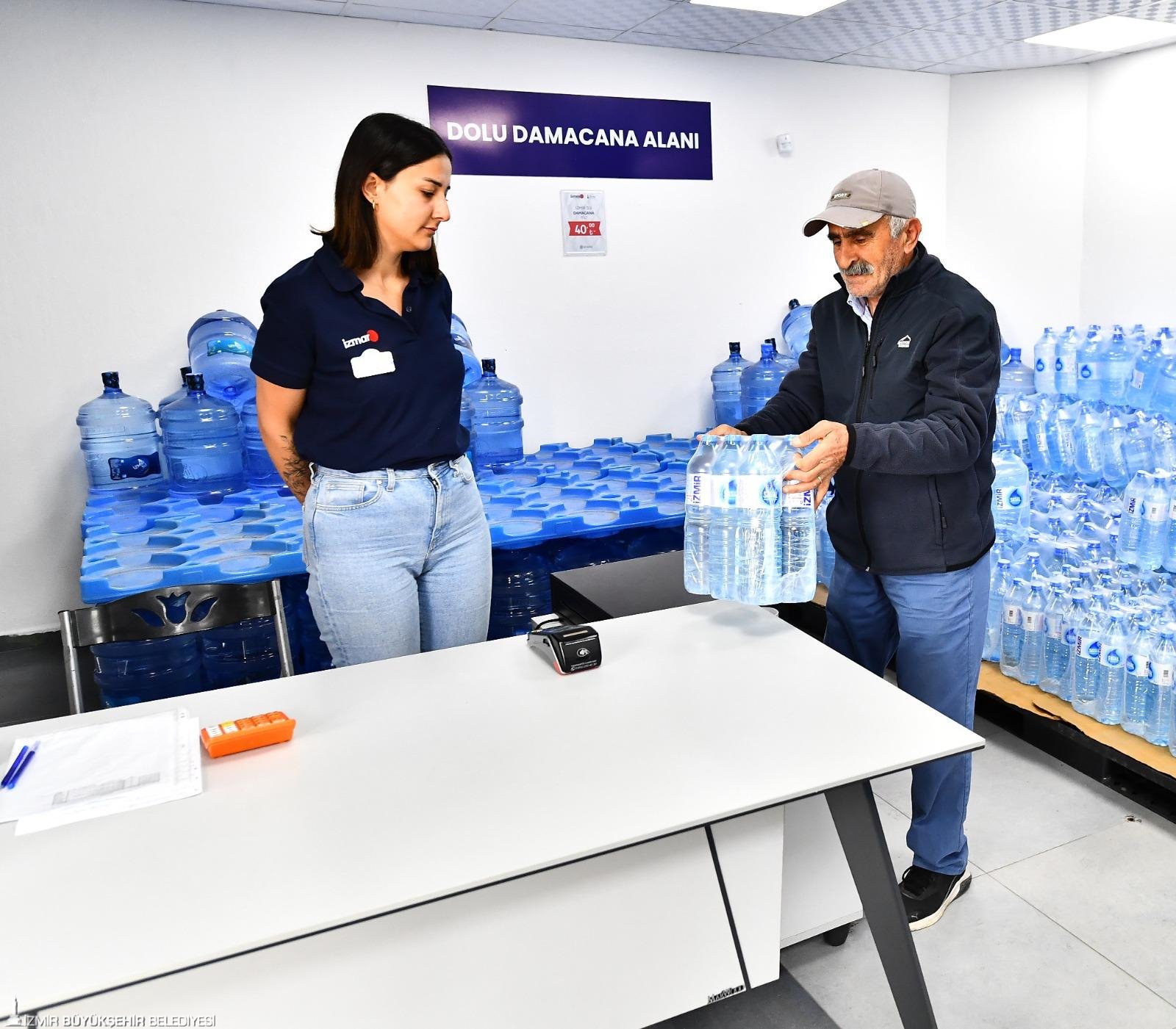 İzmirliler, piyasada fiyatı 185 TL’ye kadar ulaşan 19 litrelik damacana suları, Gel Al noktalarında İzmir Su markalı boş damacanalarını getirerek sadece 40 TL’ye alabiliyor.