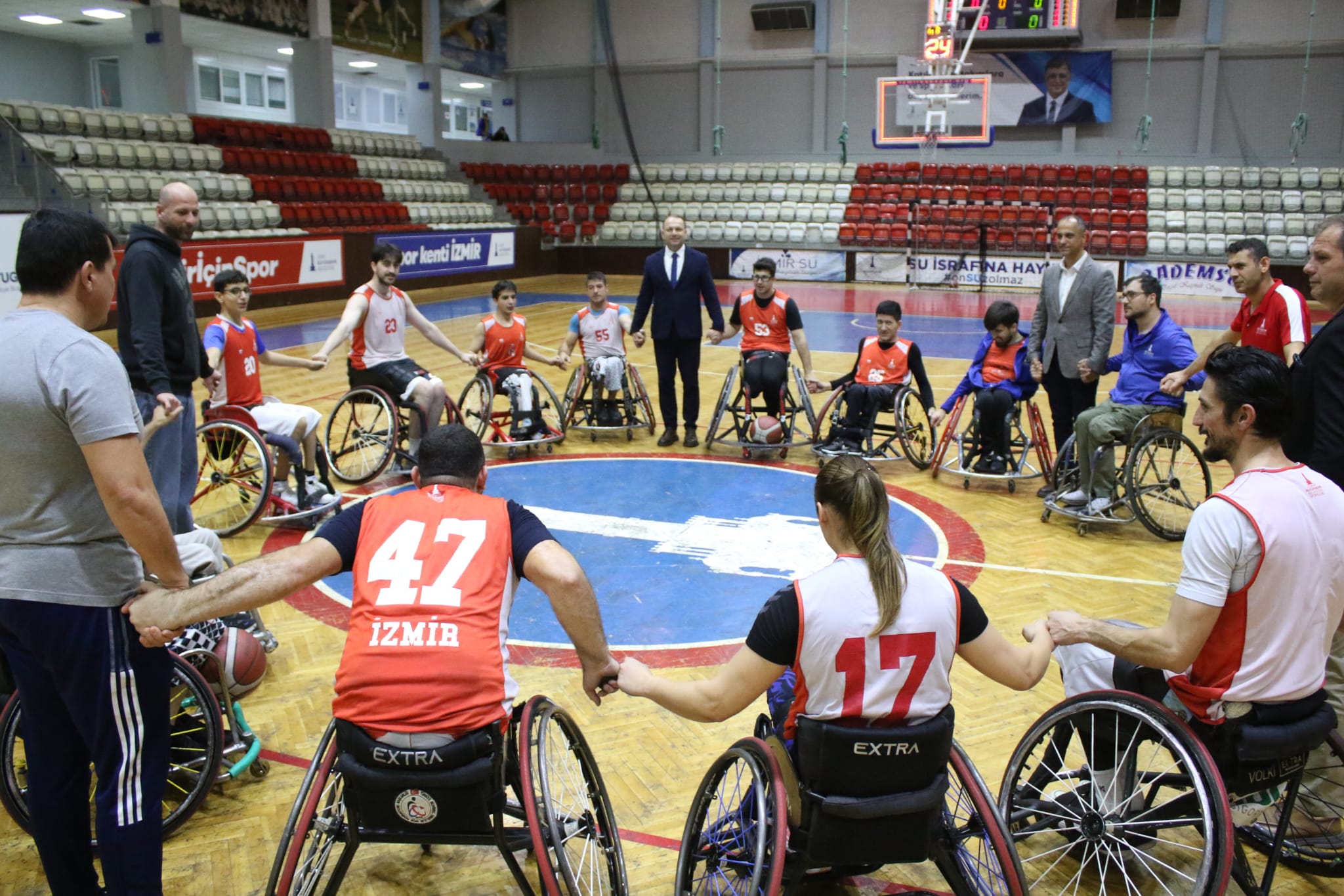İzmir Büyükşehir Belediyesi Spor Kulübü Başkanı Berkhan Alptekin, 2025–2026 sezonu hazırlıklarını Celal Atik Spor Salonu’nda sürdüren İzmir Büyükşehir Belediyesi Spor Kulübü Tekerlekli Sandalye Basketbol Takımı’nı, antrenmanda ziyaret etti. Yeni sezon öncesi sporcularla tek tek sohbet eden ve başarı dileklerini ileten Başkan Alptekin, takımın sezon boyunca fair-play ruhuyla mücadele edeceğine inandığını belirterek sporculara moral verdi.