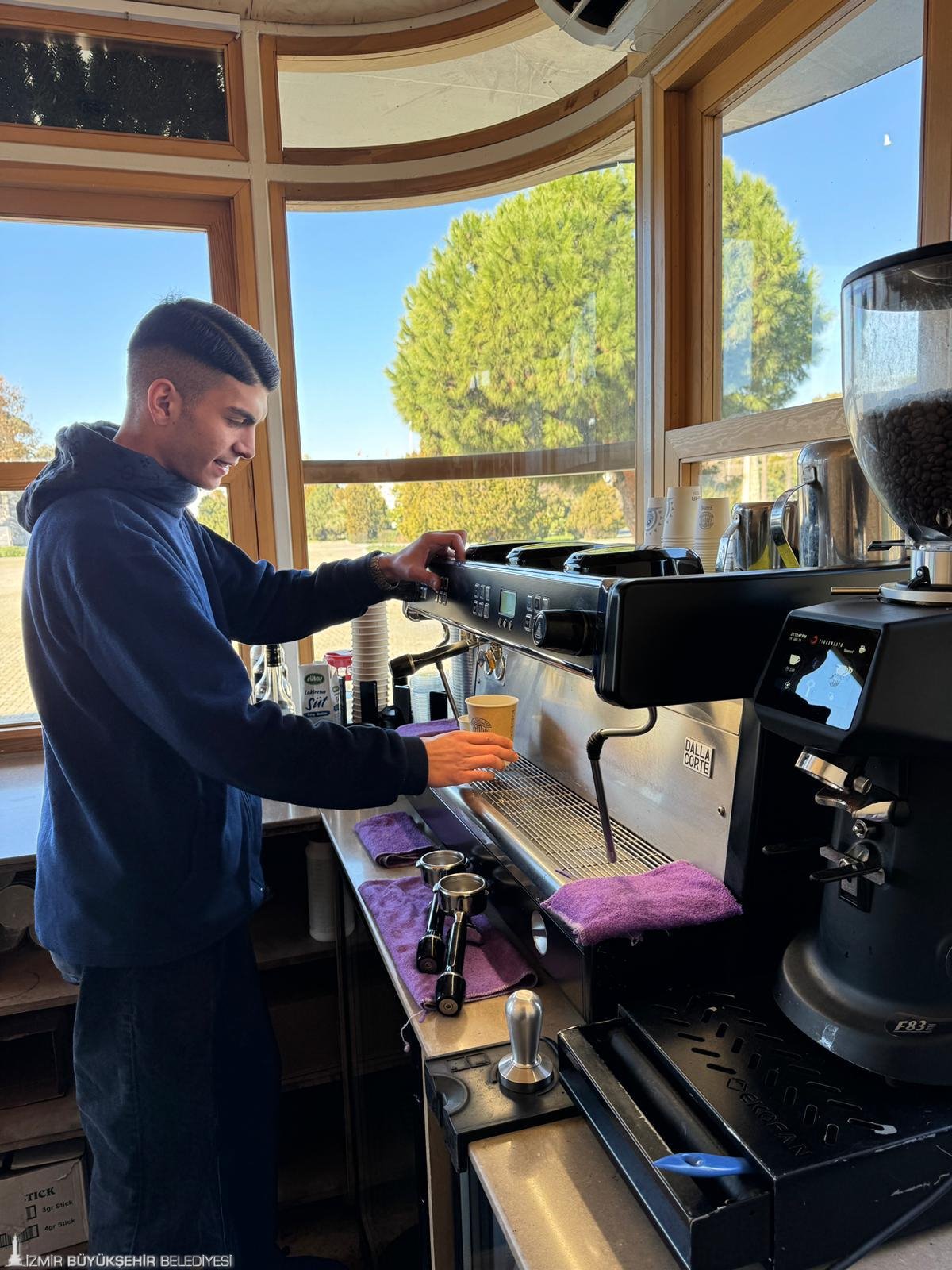 İzmir Büyükşehir Belediyesi’nin 2023 yılının kasım ayında hayat pahalılığından etkilenen gençler ve öğrenciler için hayata geçirdiği, ancak ayrımsız tüm yurttaşların yararlandığı İzmirli Kahve kaliteli ve erişilebilir hizmet sunmayı sürdürüyor.