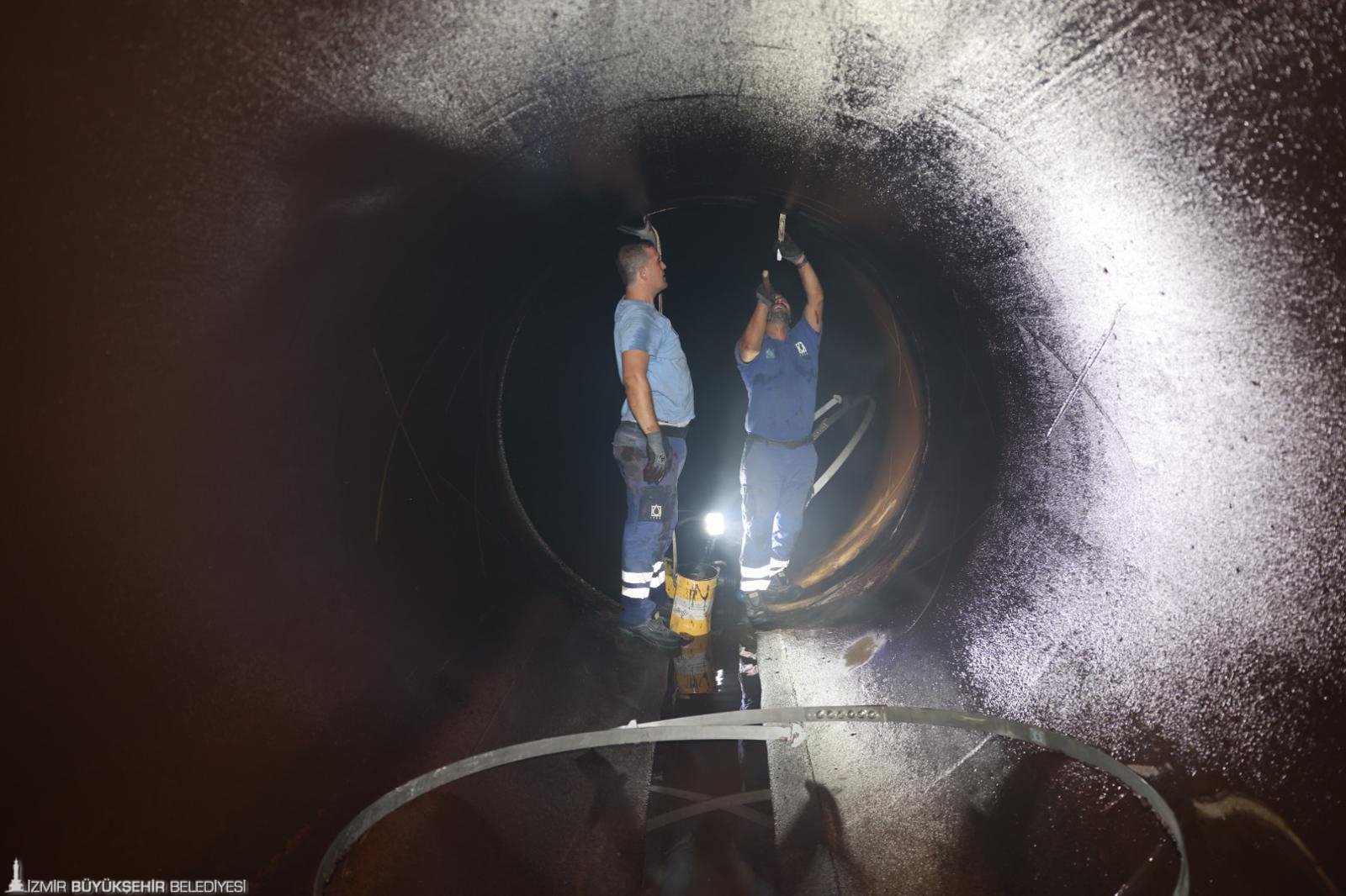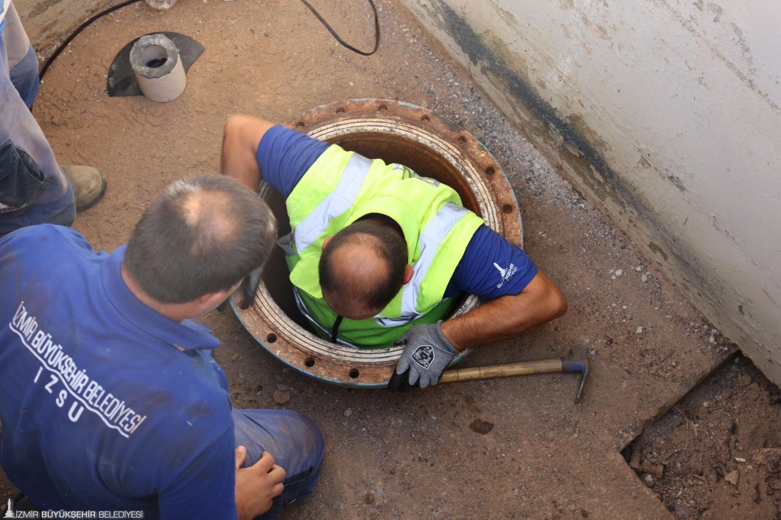 “Güzelhisar (Petkim) Barajı ile Sarıkız ve Göksu Kuyuları’ndan şehrimize su taşıyan 2,2 metre çapındaki ana su isale hattında dün gece büyük bir patlak meydana gelmiştir. Çiğli 9 Eylül Mahallesi’nde yerin 3 metre altında gerçekleşen bu patlağa, ekiplerimiz kısa sürede müdahale etmiştir.