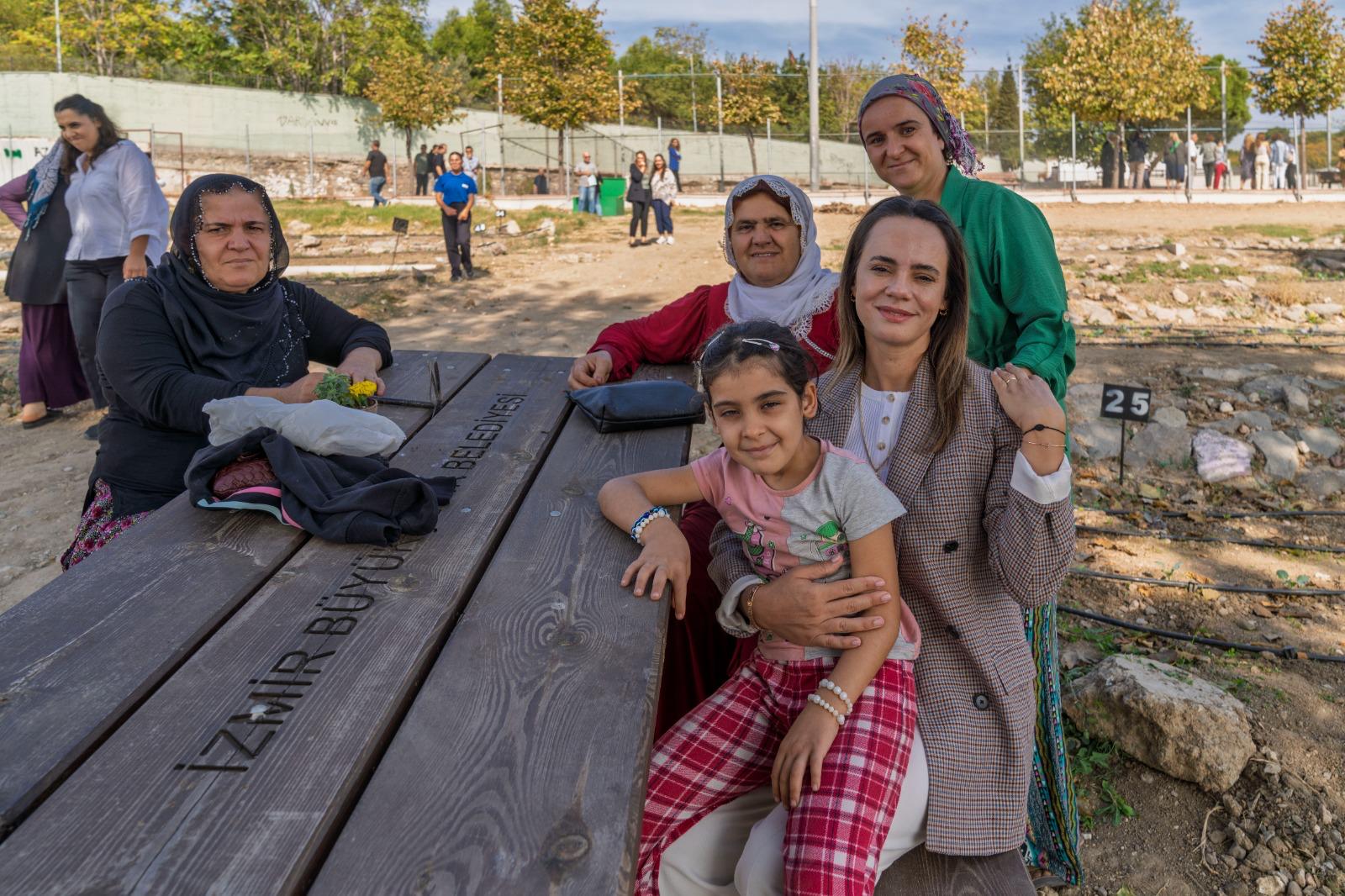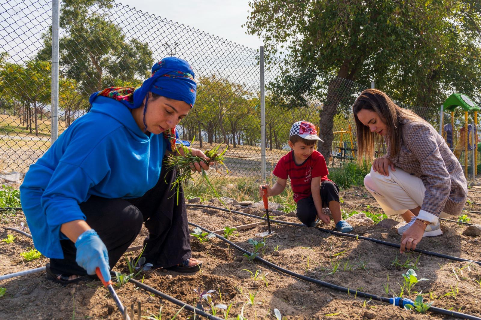 Kadifekale Mahalle Bostanı’nda hem üretici kadınlar hem de çocuklarla sohbet eden Öznur Tugay, “Burada muhteşem bir döngü var. Kadınlar toprakla temas ederek stres atıyor, bir şey üretmenin hazzını yaşıyor ve ev ekonomilerine katkı sağlıyor. Biz de elimizden geldiğince onların yanında olmaya çalışıyoruz” dedi.