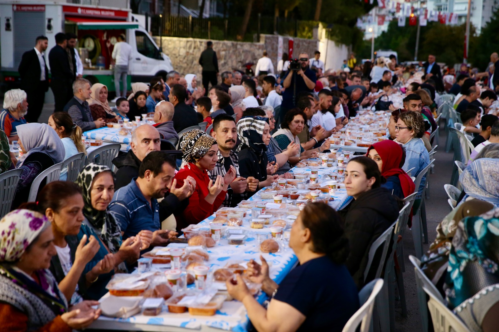 Karşıyaka Belediye Başkanı Yıldız Ünsal “Biz çok büyük bir aileyiz ve bu anlamlı günlerde birbirimize daha da kenetleneceğiz. Paylaşma ve dayanışma kültürünü yaşatan geleneksel iftar yemeklerimizi, bu yıl da yoğun bir programla sürdüreceğiz. Binlerce vatandaşımızla hem ekmeğimizi hem de dostluğumuzu paylaşacağız. Karşıyakamızın dört bir yanında kuracağımız sofralara tüm vatandaşlarımızı bekliyor; Ramazan ayının hepimize sağlık, huzur ve mutluluk getirmesini diliyorum” diye konuştu.