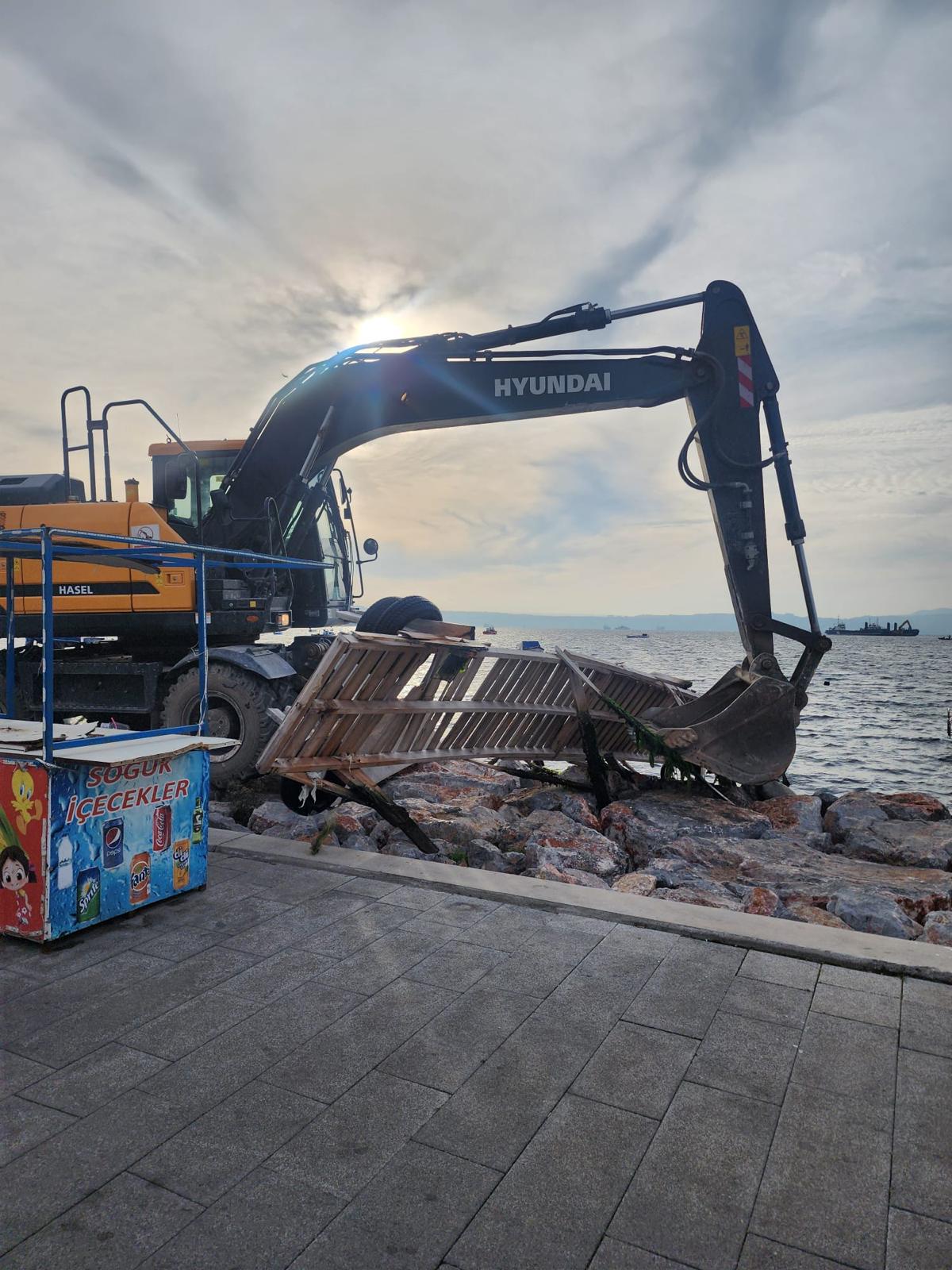 3621 sayılı Kıyı Kanunu ve ilgili Yönetmelik ile 3194 sayılı İmar Kanunu hükümlerine aykırı olarak inşa edildiği tespit edilen izinsiz iskele ve beton platformların, Büyükşehir Belediyesi Encümeni’nin kararı; 775 sayılı Gecekondu Kanunu’nun 18. maddesi uyarınca, belediye sınırları içinde veya dışında kamuya veya devlete ait taşınmazlar üzerinde inşa edilen izinsiz yapıların belediyelerce alınacak karar doğrultusunda tebliğ süreci tamamlanarak yıktırılması hükmüne uygun olarak kaldırılmasına karar verilmişti.