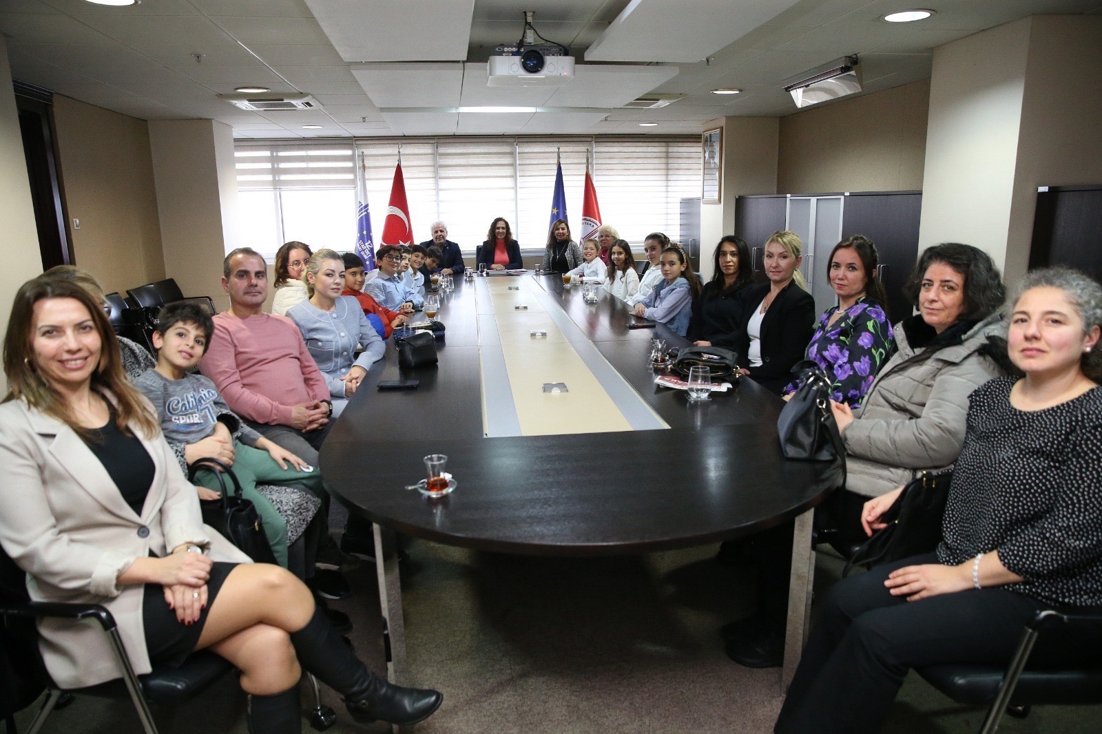 Karşıyaka Belediye Başkanı Yıldız Ünsal, 5 Ocak 2025 tarihinde gerçekleştirilen Genel Kurul’da göreve seçilen Karşıyaka Kent Konseyi Çocuk Meclisi Başkanı Asrın Ege Akbulut, Başkan Yardımcısı Feraye Şahin ve Yürütme Kurulu üyeleri ile bir araya geldi. Ziyarette çocuklara; Kent Konseyi Başkanı Dilek Karcı, Genel Sekreter Sema İzgür, Çocuk Meclisi danışman öğretmeni Erhan Doğan ve velileri de eşlik etti. Başkan Ünsal’a proje ve hedeflerini anlatan çocuklar, mahalleler için spor ve aktivite merkezi taleplerini aktardı; parklar, çöplerin toplanması ve çevre temizliği gibi çeşitli konulardaki önerilerini dile getirdi.
