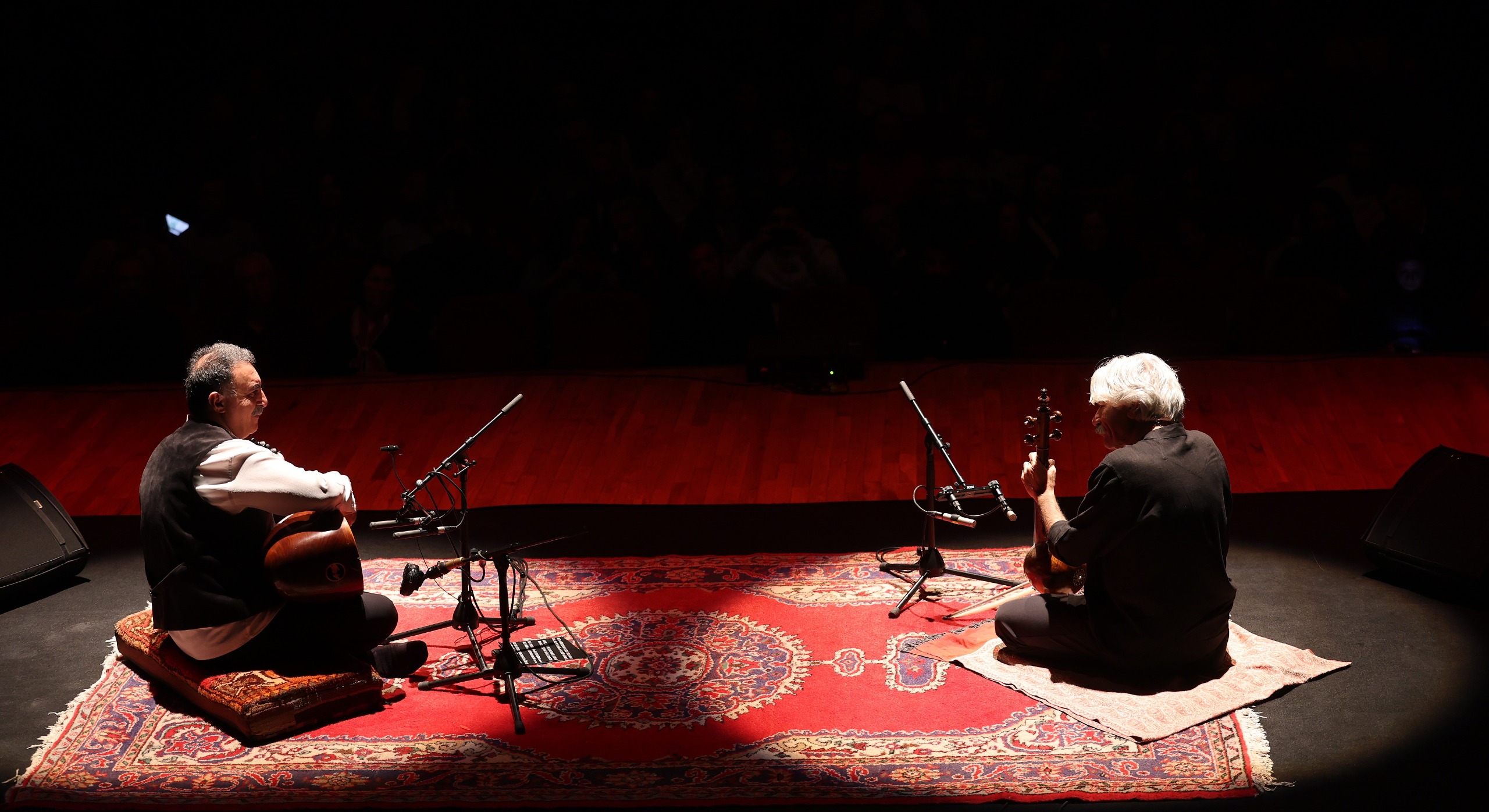 Yaklaşık iki saat süren müzik ziyafetinde Pers ve Anadolu müzik gelenekleri, makam ve doğaçlama şeklinde icra edildi. Kalhor’un kamançası derin, yankılı taksimlerle salondakilere duygusal anlar yaşatırken Erdal Erzincan’ın bağlaması ise bu seslere hem eşlik etti hem de karşılık verdi. İkili, “çağrı-yanıt” esasına dayalı, neo-meşk geleneğine yakın bir tavırla dinleyenlere kültürler ve sesler arası bir yolculuğa çıkardı.