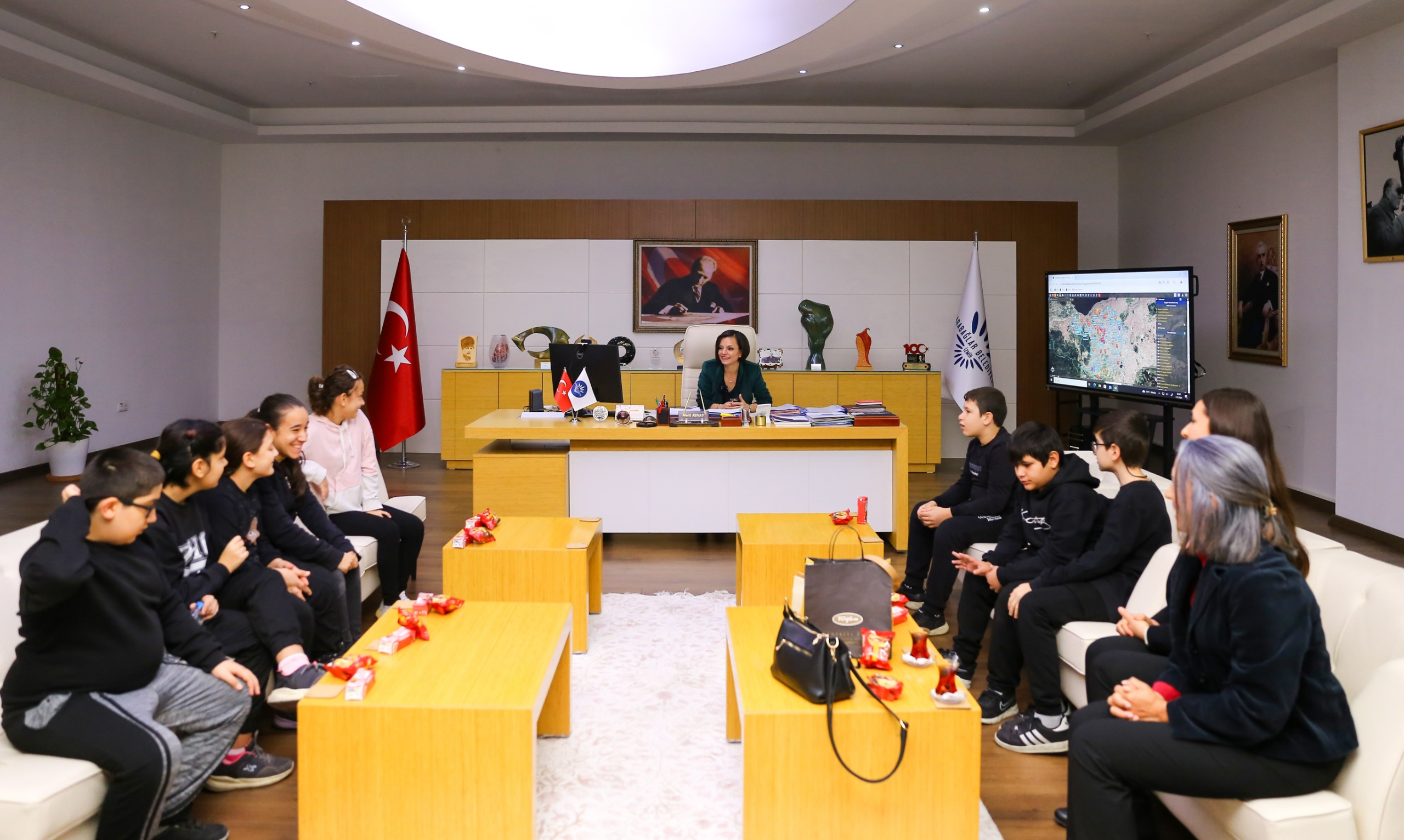3 Aralık Dünya Engelliler Günü kapsamında, Karabağlar’daki Zeyni Hanım Ortaokulu’nda eğitim gören özel gereksinimli öğrenciler, öğretmenleriyle birlikte Karabağlar Belediye Başkanı Helil Kınay’ı makamında ziyaret etti.