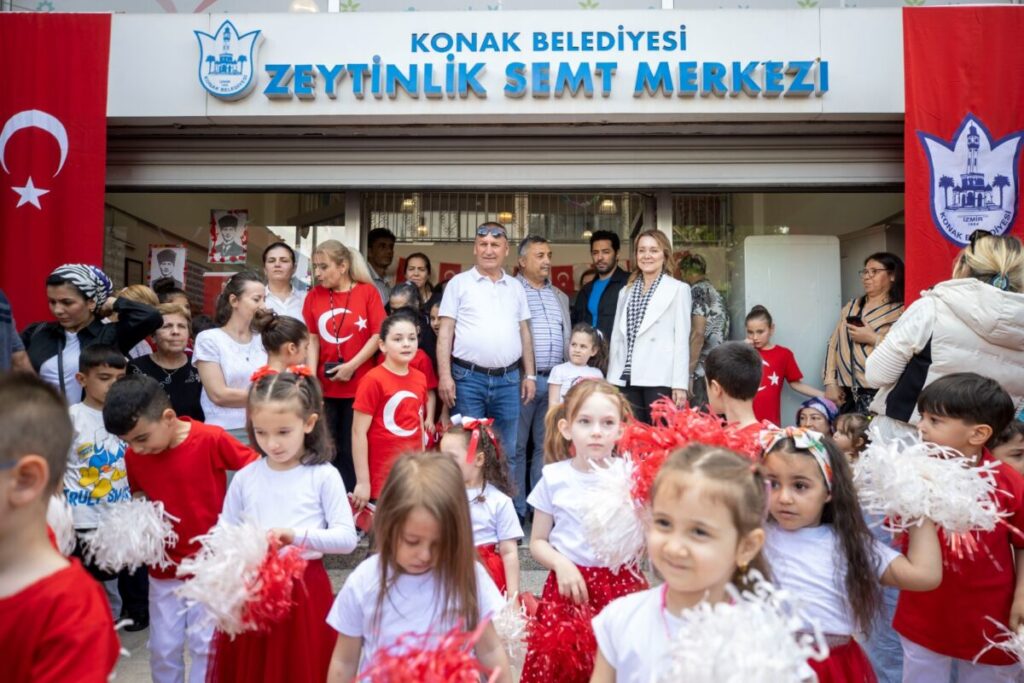 Konak Belediyesi Kadın ve Aile Hizmetleri Müdürlüğü’ne bağlı olarak hizmet veren Zeytinlik Semt Merkezi ile Mersinli Semt Merkezi’nde23 Nisan Ulusal Egemenlik ve Çocuk Bayramı minik kursiyerlerin gösterileriyle coşku içinde kutlandı.