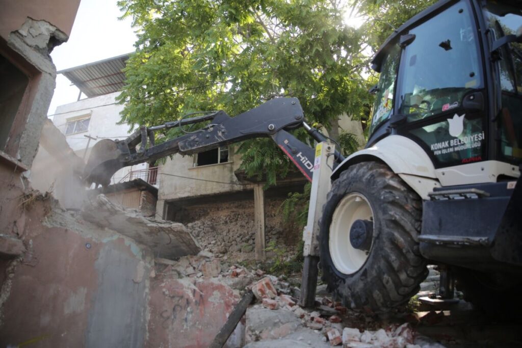 Konak Belediyesi, ilçe estetiğini bozan ve kamu güvenliğine karşı risk oluşturan metruk binalara karşı çalışmalarını sürdürüyor.
