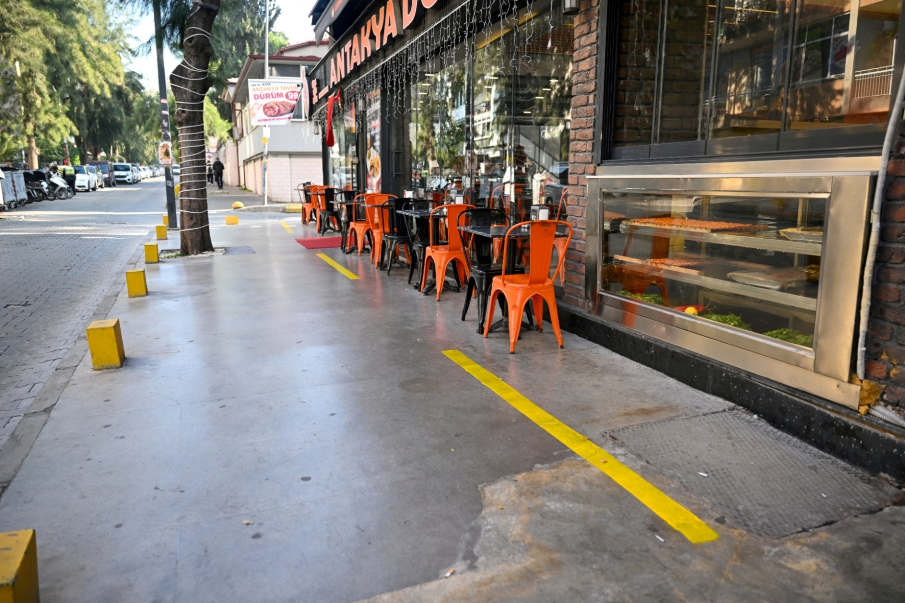 Bornova Belediyesi Zabıta Müdürlüğü ekipleri, Küçükpark bölgesindeki işletmelerde işgaliye denetimi gerçekleştirerek kamuya ait alanların dışına taşan kullanımın önüne geçmek için sınırları çizgilerle işaretledi. Boyama ve işaretleme çalışmalarıyla, kaldırımlar ve ortak kullanım alanları yayalar için daha güvenli ve düzenli hale getirildi.