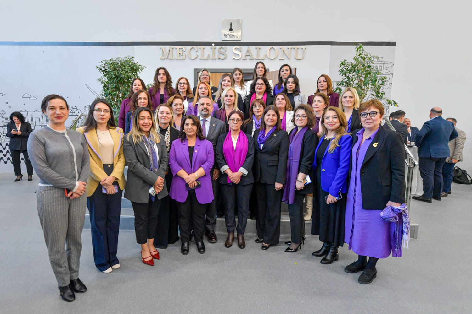Meclis üyesi kadınların basın açıklamasına CHP İzmir İl Başkanı Şenol Aslanoğlu da katıldı.