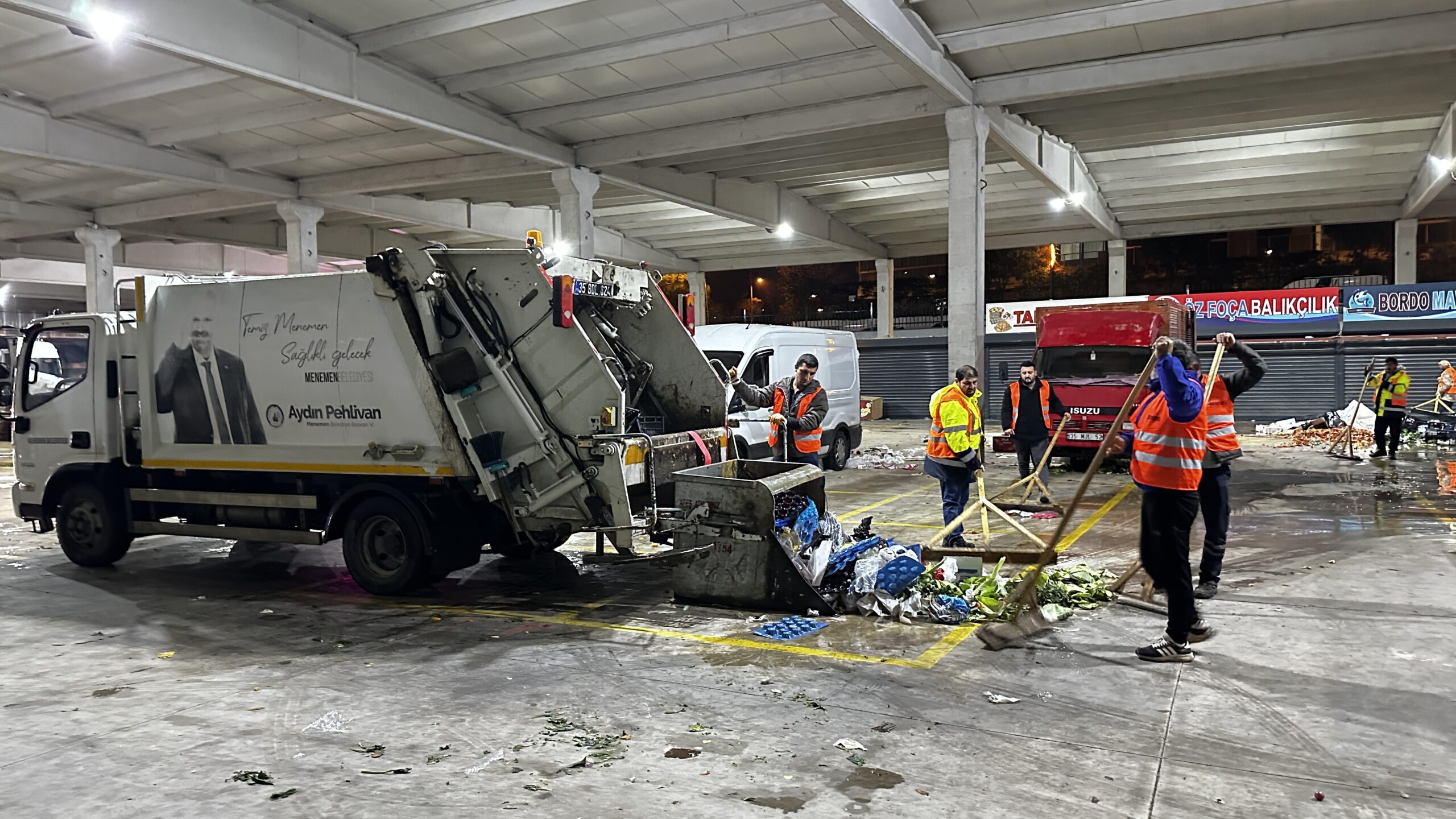 Temizlik ekiplerinin mesaisinde en yoğun bölümse pazar kapandıktan sonra başlıyor. Kalabalık bir kadroyla alanda yer alan temizlik ekipleri, sadece birkaç saat içinde pazar yerindeki tüm çöpleri temizliyor ve alanın düzenlemesini gerçekleştiriyor.