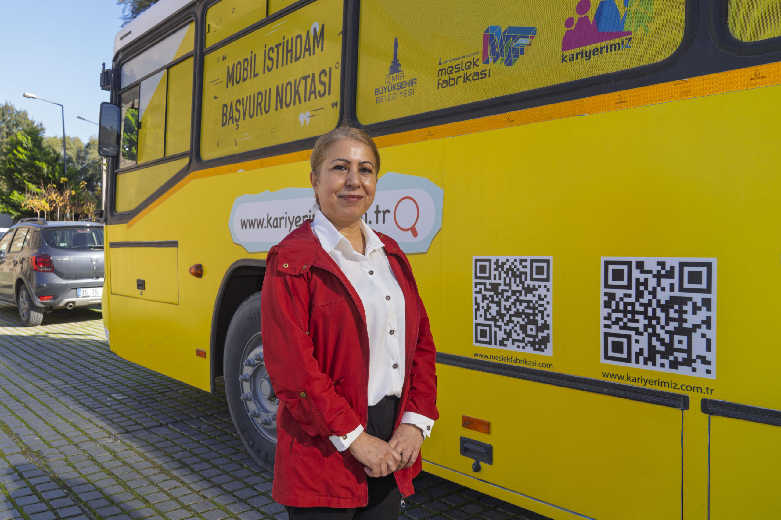 Adana’dan İzmir’e göç eden Aynur Dağaşan da Meslek Fabrikası Mobil İstihdam Aracı’nın yönlendirmesiyle işe yerleştirildi.