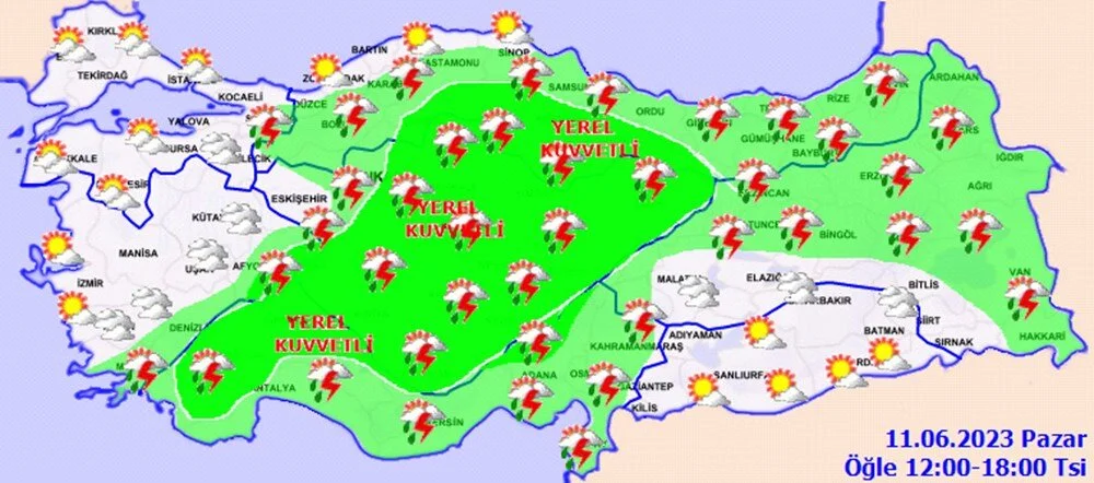 Aşağıdaki bölgelerde sağanak ve gök gürültülü sağanak yağışlar bekleniyor: