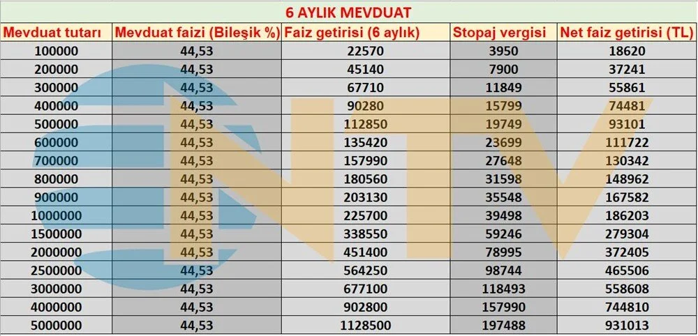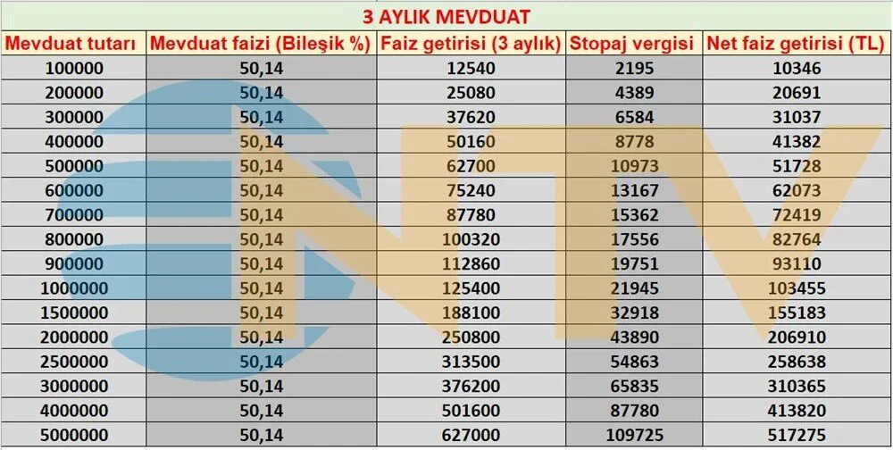 Daha büyük yatırımlar da orantılı kazanç sağlıyor. 1 milyon TL’lik mevduat aynı vadede brüt 39 bin 766 TL, net 32 bin 807 TL faiz getirisi sunuyor.