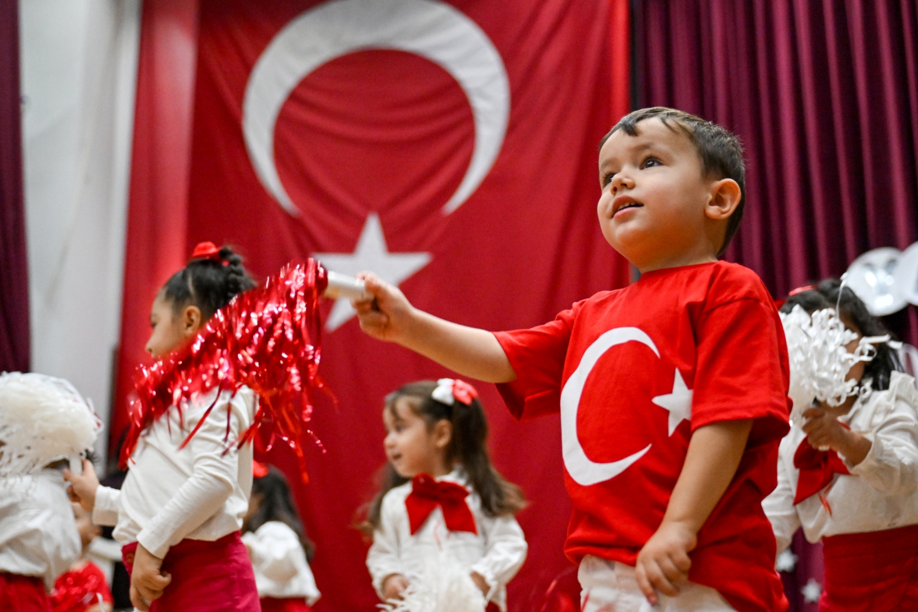 Şarkılar söyleyen, dans eden ve şiirler okuyan çocuklar, performanslarıyla ailelerinden büyük alkış aldı. Başkan Ömer Eşki, “Cumhuriyet bilincini çocuklarımızla birlikte büyütüyoruz” diyerek etkinliğe katılan minikleri kutladı.