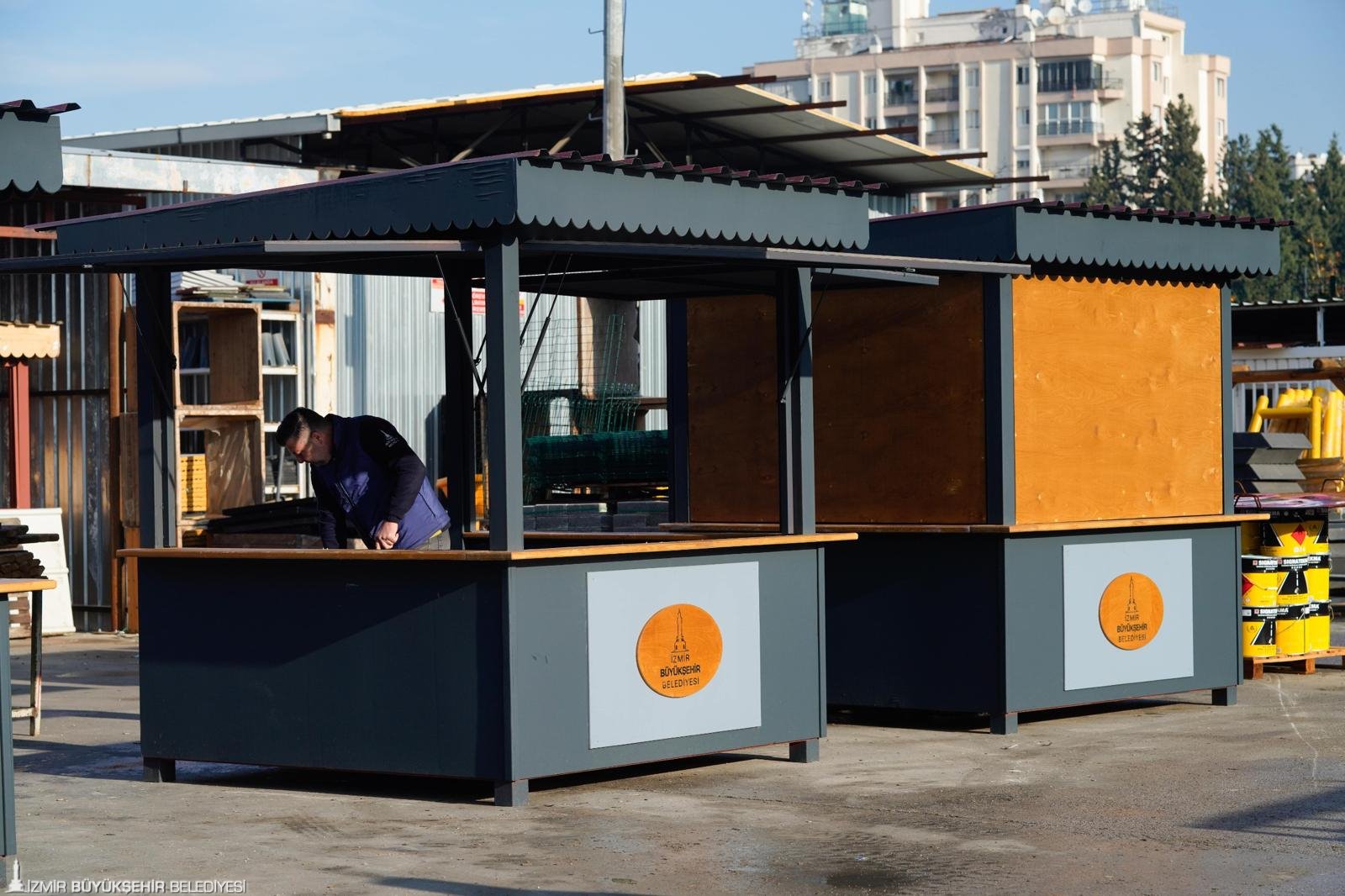 İzmir Büyükşehir Belediyesi atölyelerinde üretilen, estetik görünüme sahip yeni tezgahlarda hijyen standartlarına uygun ve denetlenebilir şekilde hizmet verilecek.
