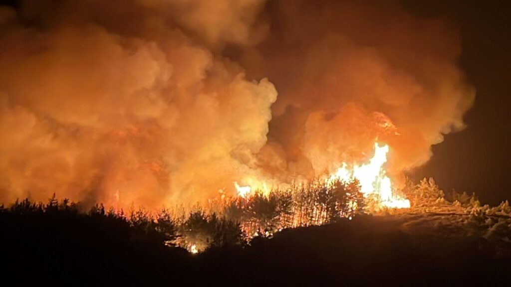 Havanın kararmasıyla birlikte yangına müdahale karadan devam etti. Çok sayıda arazöz, itfaiye aracı ve orman işçilerinin yanı sıra jandarmanın TOMA araçları ve Yeniköy Kemerköy Elektrik Üretim ve Ticaret AŞ’nin (YK Enerji) iş makineleriyle yangına müdahale ediliyor. Söndürme çalışmalarına farklı sivil toplum kuruluşu gönüllüleri ve vatandaşlar da destek veriyor. Yangına 2 gece görüşlü helikopterle havadan müdahale sürüyor.