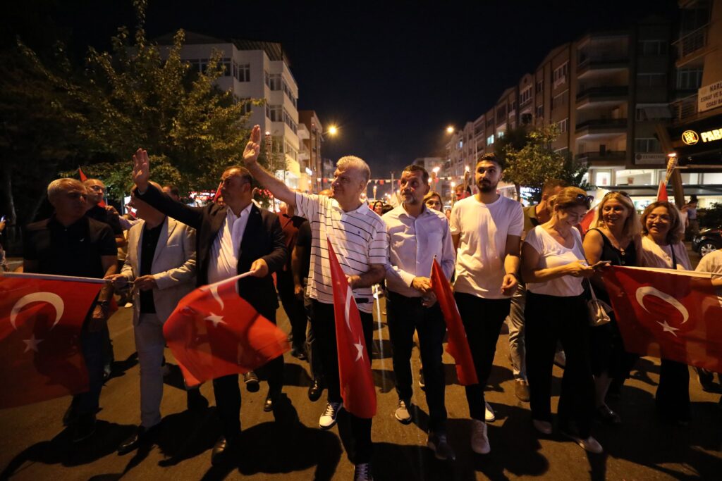 Türkiye Cumhuriyeti’nin temelini güçlendiren, bizi sömürge durumuna düşmekten kurtaran bu şanlı mücadelenin ölümsüz kahramanlarını tüm Türkiye’de olduğu gibi Narlıdere’mizde de saygı ve özlemle anacağız. Eğer bu topraklarda hür ve bağımsız olarak yaşıyorsak bunu Atatürk ve silah arkadaşlarına borçluyuz. Tüm yurttaşlarımızı 30 Ağustos Zafer Bayramı ve Fener Alayı coşkusunu Narlıdere’de yaşamaya davet ediyoruz” diye konuştu.