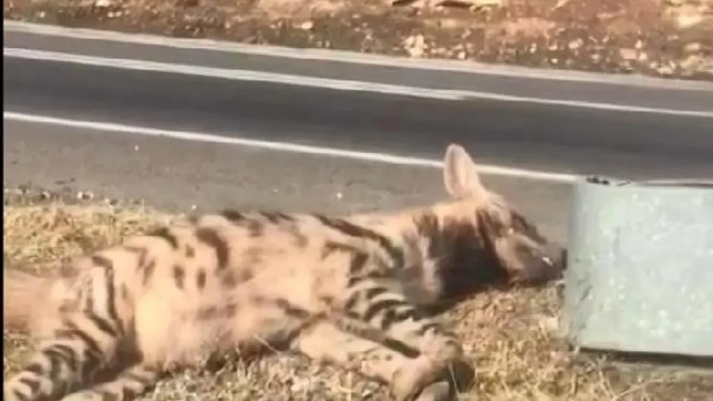 Ekipler, hayvanın nesli tükenme tehlikesi altındaki çizgili sırtlan olduğunu ve bir aracın çarpması sonucu öldüğünü tespit etti.