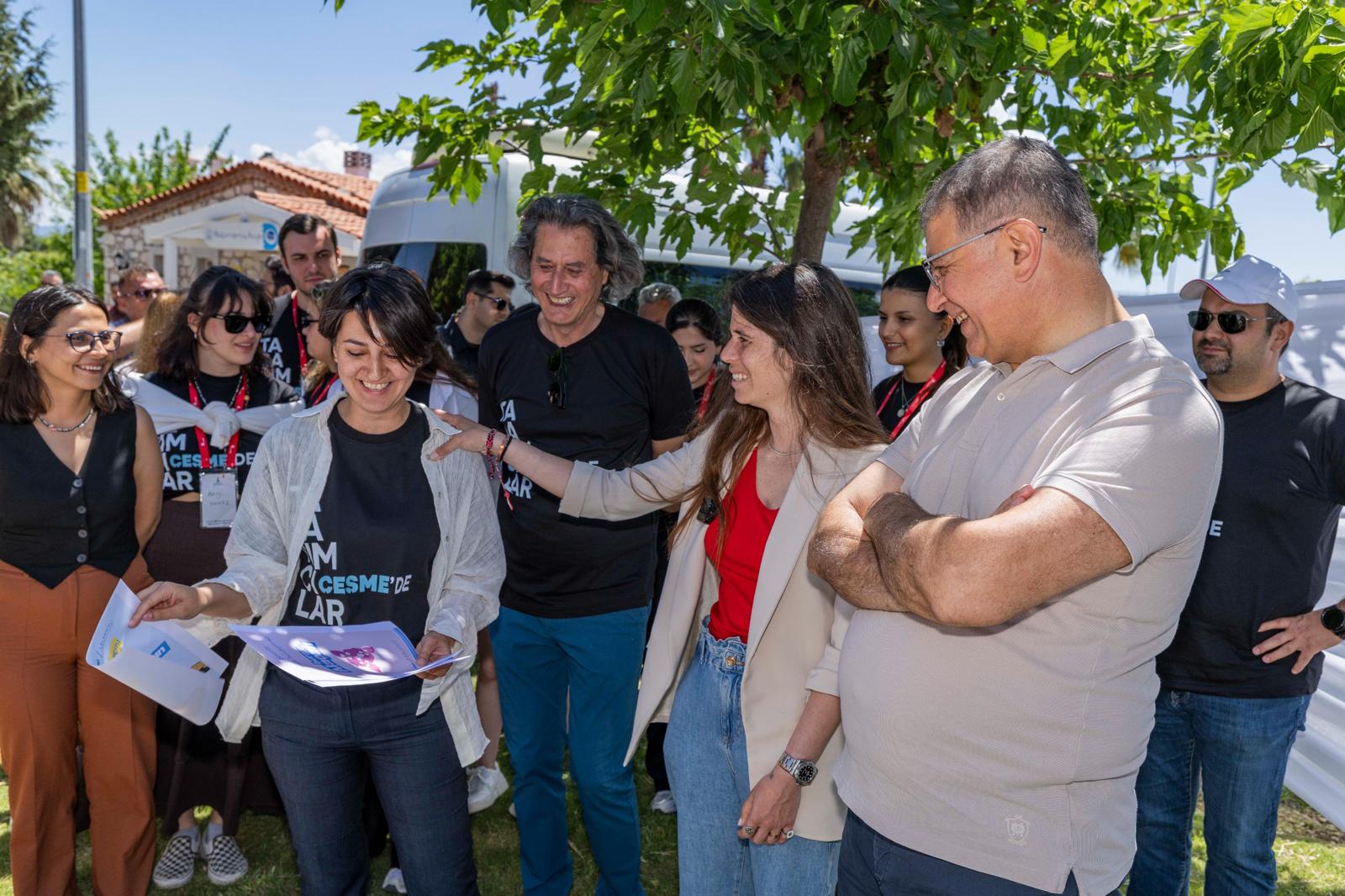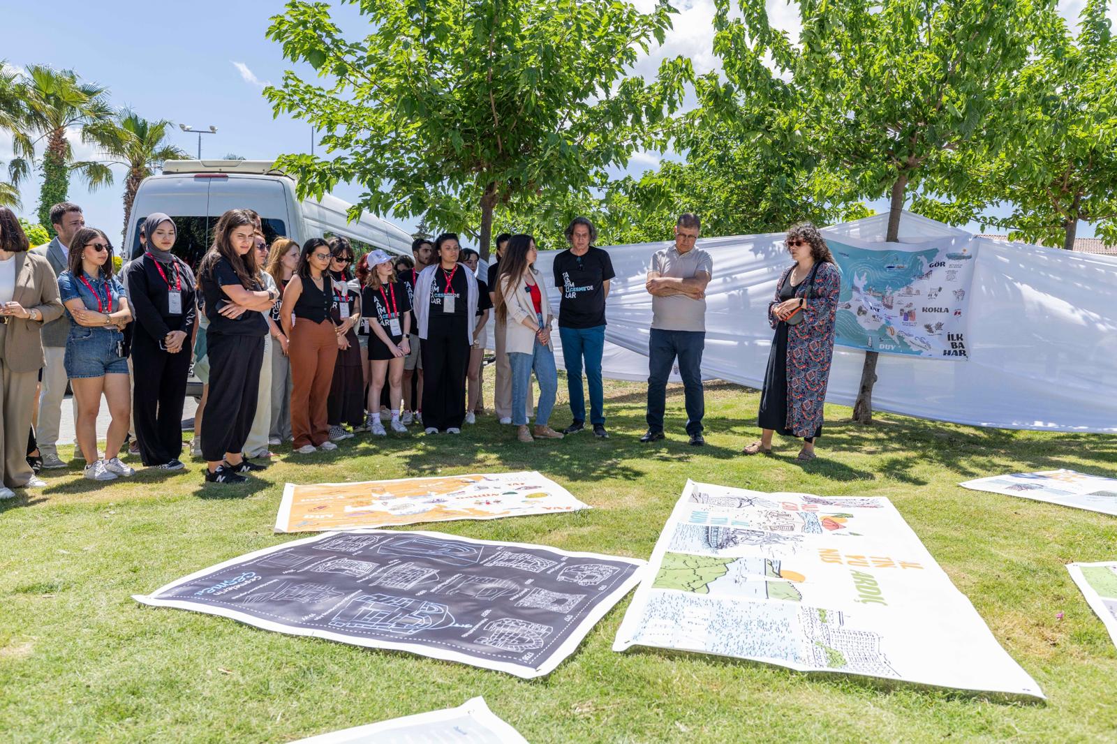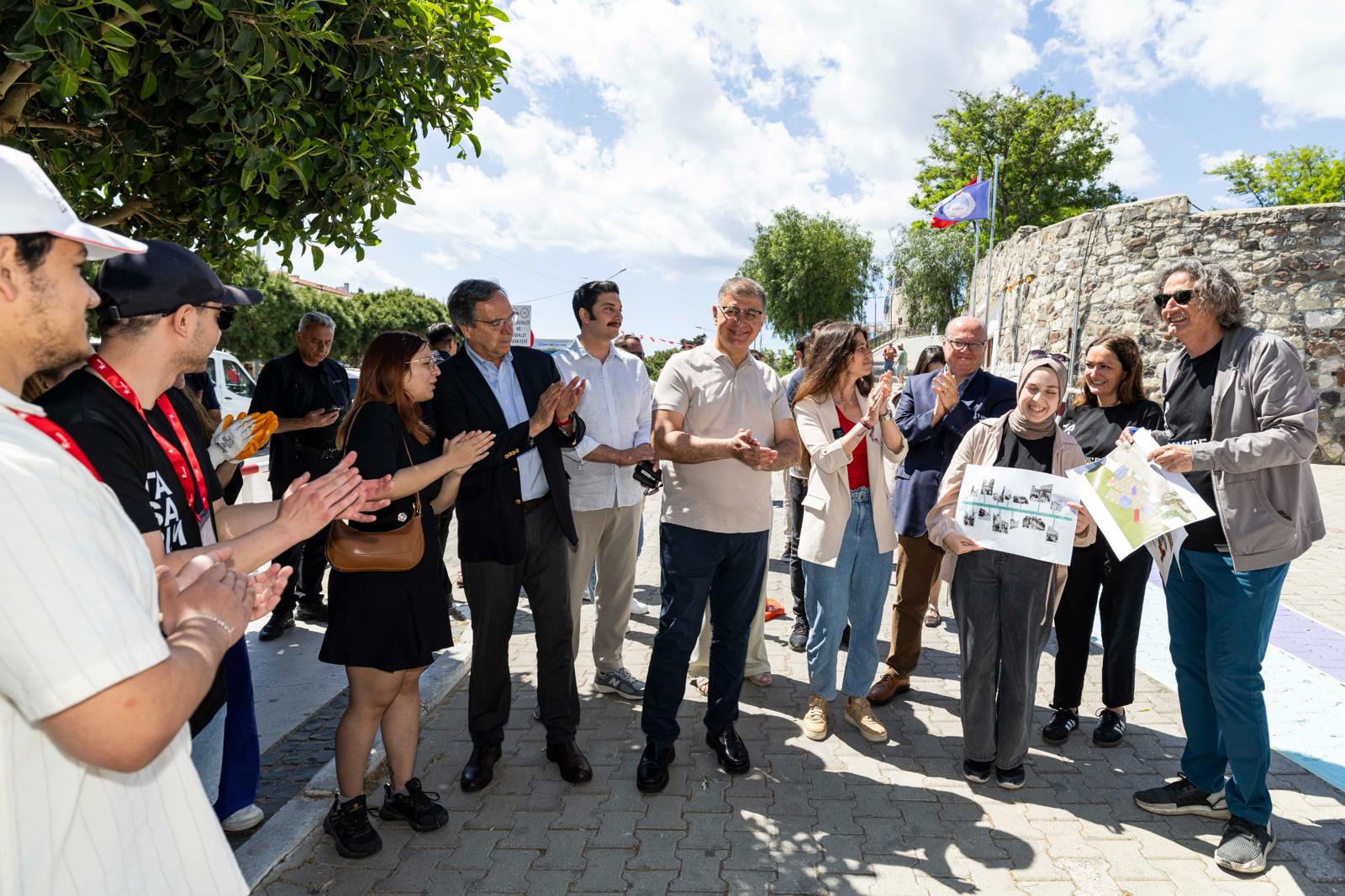 İzmir Büyükşehir Belediye Başkanı Dr. Cemil Tugay, 19 Mayıs Atatürk’ü Anma, Gençlik ve Spor Bayramı kutlamaları kapsamında İzmir Büyükşehir Belediyesi öncülüğünde Çeşme, Karaburun, Seferihisar ve Foça’da yürütülen “Tasarımcılar İzmir’de” etkinliğine katıldı. Mimarlık, şehir planlama, grafik tasarımı, ürün tasarımı, sanat, iletişim ve turizm gibi birçok disiplinden 18-30 yaş arası üniversite öğrencisi ve mezun gençlerin yer aldığı etkinliğin Çeşme etabını ziyaret eden Başkan Dr. Cemil Tugay, Alaçatı’da çalışma yürüten genç tasarımcılarla buluştu. Başkan Tugay’a Çeşme Belediye Başkanı Lâl Denizli, İzmir Planlama Ajansı (İZPA) Başkanı Prof. Dr. Koray Velibeyoğlu, İzmir Büyükşehir Belediyesi ile Çeşme Belediyesi bürokratları eşlik etti.