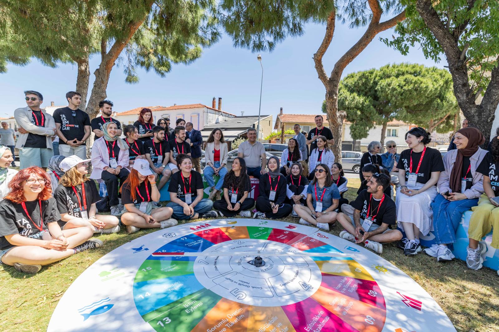 Çalışmalar hakkında bilgi veren Güzel İzmir Hareketi Koordinatörü Esra Yılmaz Keskin, “İzmir Büyükşehir Belediyesi öncülüğünde Tasarımcılar İzmir’de Gençlik Kampı’ndayız. 16 – 19 Mayıs tarihleri arasında bu çalışmayı 4 ilçede gerçekleştiriyoruz. Kıyı Köşe Programı kapsamında 4 ilçemizde tasarım alanları belirlendi. Bir gün tasarım, ikinci gün uygulama şeklinde birlikte tasarlıyoruz, birlikte uyguluyoruz. Katılımcı tasarım anlayışıyla genç tasarımcılar, dün tasarladıkları ürünleri bugün burada yerinde uygulama yapıyorlar. Kendi belirledikleri tasarım kararları çerçevesinde Alaçatı’nın yel değirmeninden esinlenerek yerde bir yel değirmeni tasarımı boyamak istediler. İzmir Büyükşehir Belediyesi’nin ve ilçe belediyelerin atölyelerinde bulunan ürünleri kullanarak neler yaratabiliriz düşüncesinden çıktı bu tasarımlar. Örneğin paletlerle bir oturma birimleri, peyzaj elemanları tasarladılar. Hayvan dostlarımız için kedi evi tasarladılar onu üretiyorlar. Bu şekilde genç tasarımcıların tasarladıkları ürünlerin yerinde uygulaması yapılıyor” şeklinde konuştu.
