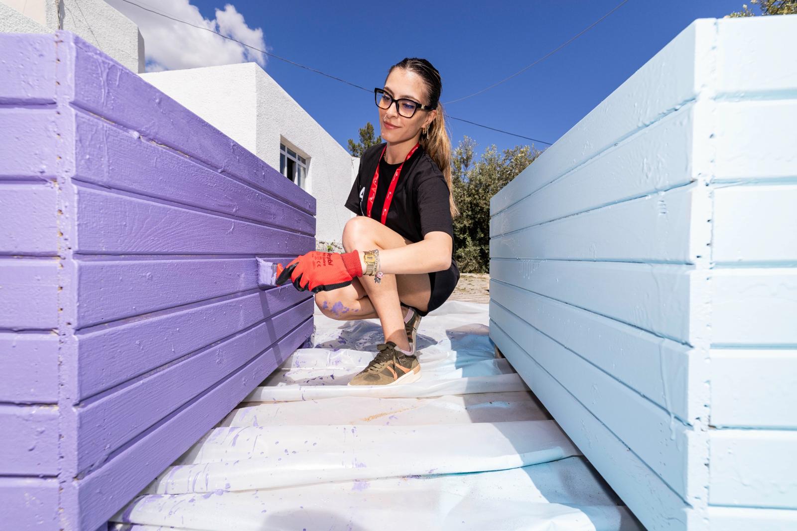 “Keşfet-Tasarla” temalı program kapsamında Alaçatı’nın girişinde yer alan amfi tiyatro alanının daha etkin ve kolay erişilebilir bir şekilde kullanımı için gençlerin tasarladıkları projeyi inceleyen Başkan Tugay, tasarımcıların uygulamalarına katılarak boya yaptı. Gençlerden uyguladıkları projeler hakkında bilgi alan Başkan Tugay, tasarımcıların kente ve ilçeye dair önerilerini dinledi. Başkan Tugay, “Bu iki yönlü bir çalışma. Hem sizler kendinizi geliştiriyorsunuz hem de şehrin iyiliği için güzel çalışmalar ortaya çıkıyor. Herkesin yaşadığı şehri daha iyi hale nasıl getirebiliriz diye bakması lazım. Bizler de bunun önünü açmalıyız” dedi.