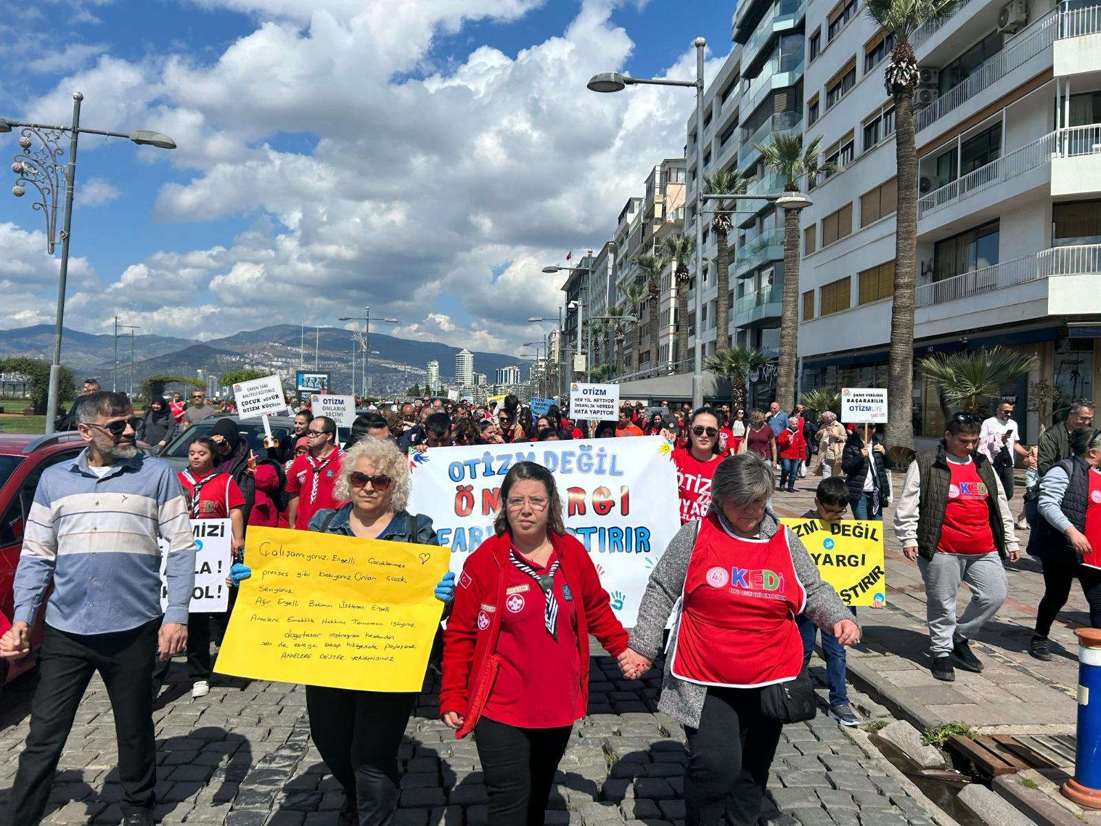 Yürüyüşte, çok sayıda vatandaş ellerinde dövizler taşıyarak sloganlar attı. Etkinlikte Cumhuriyet Meydanı’nda yer alan Atatürk Anıtı’na çelenk sunulurken, kurulan sahnede İzmir Otizm Orkestrası ve Korosu, Sıradışı Çocuklar ve otizmli çocuklar ile gençlerin solo konserleri verildi.