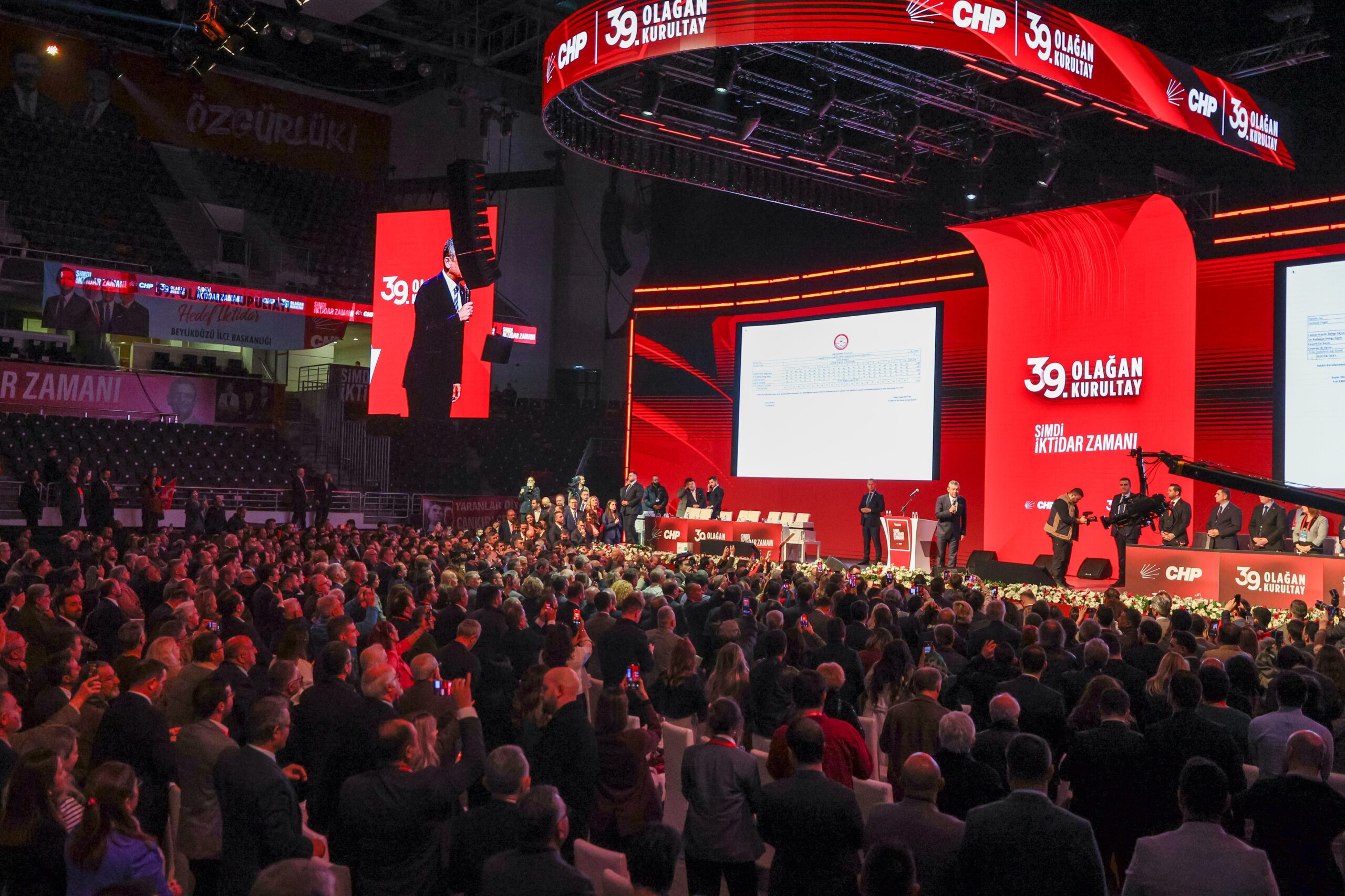 Özel’in konuşmasının ardından kurultay salonunda sloganlar, alkışlar ve tezahüratlar uzun süre devam etti. CHP’de yeni dönem, Parti Meclisi seçimleriyle yarın devam edecek.