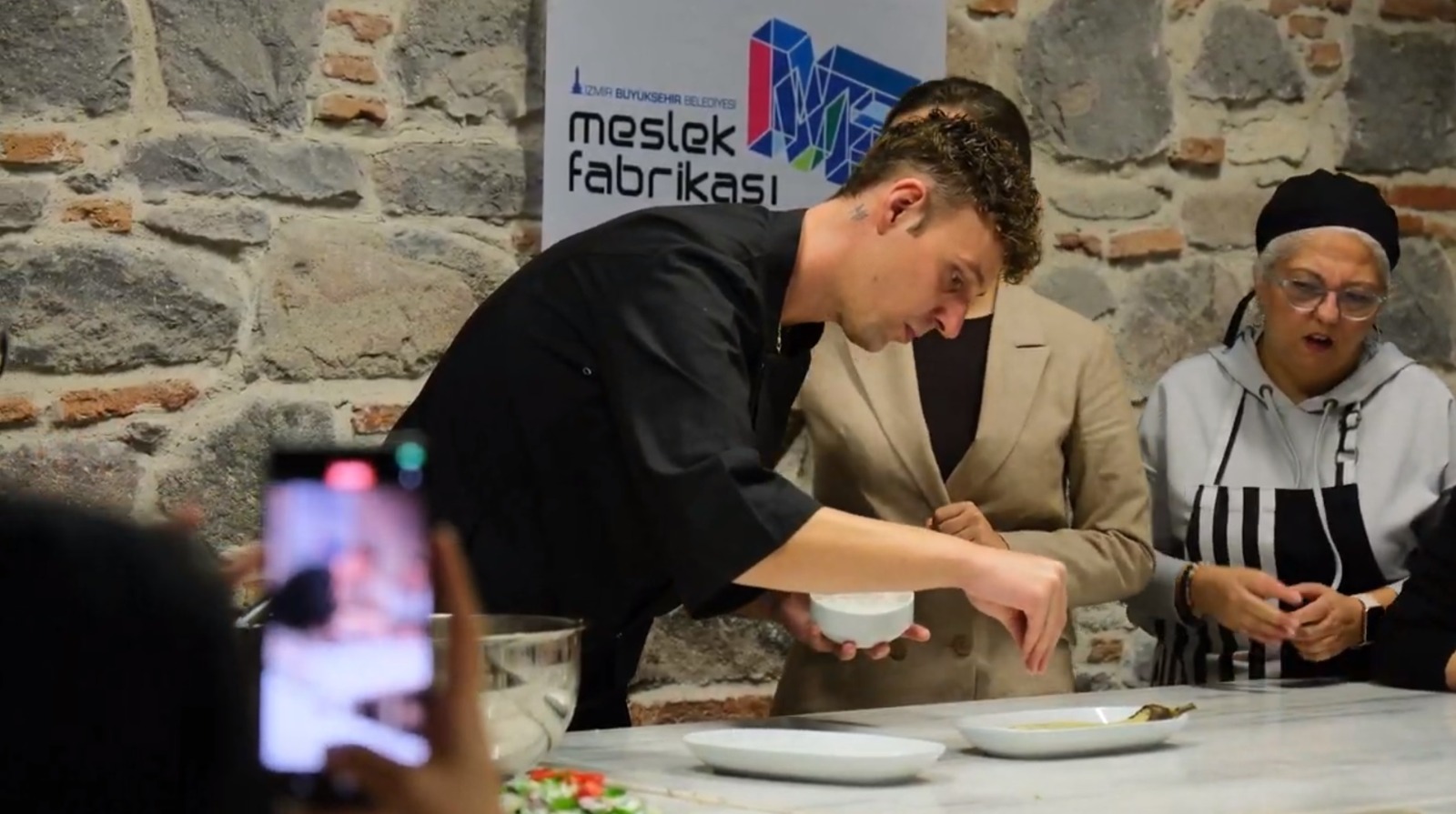 İzmir Büyükşehir Belediyesi’nin Meslek Fabrikası’nda düzenlediği sağır ve işitme engelli kursiyerlere yönelik pastacı çıraklığı kursundan mezun olan kursiyerler, İzmir Çeşme’de restoranı bulunan ve sosyal medya platformlarında birbirinden özel tariflerini paylaşan şef Rıfat Yurttaş ile buluştu.