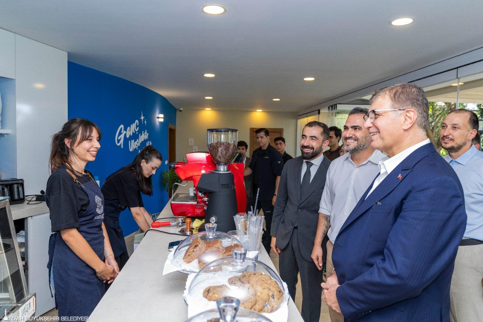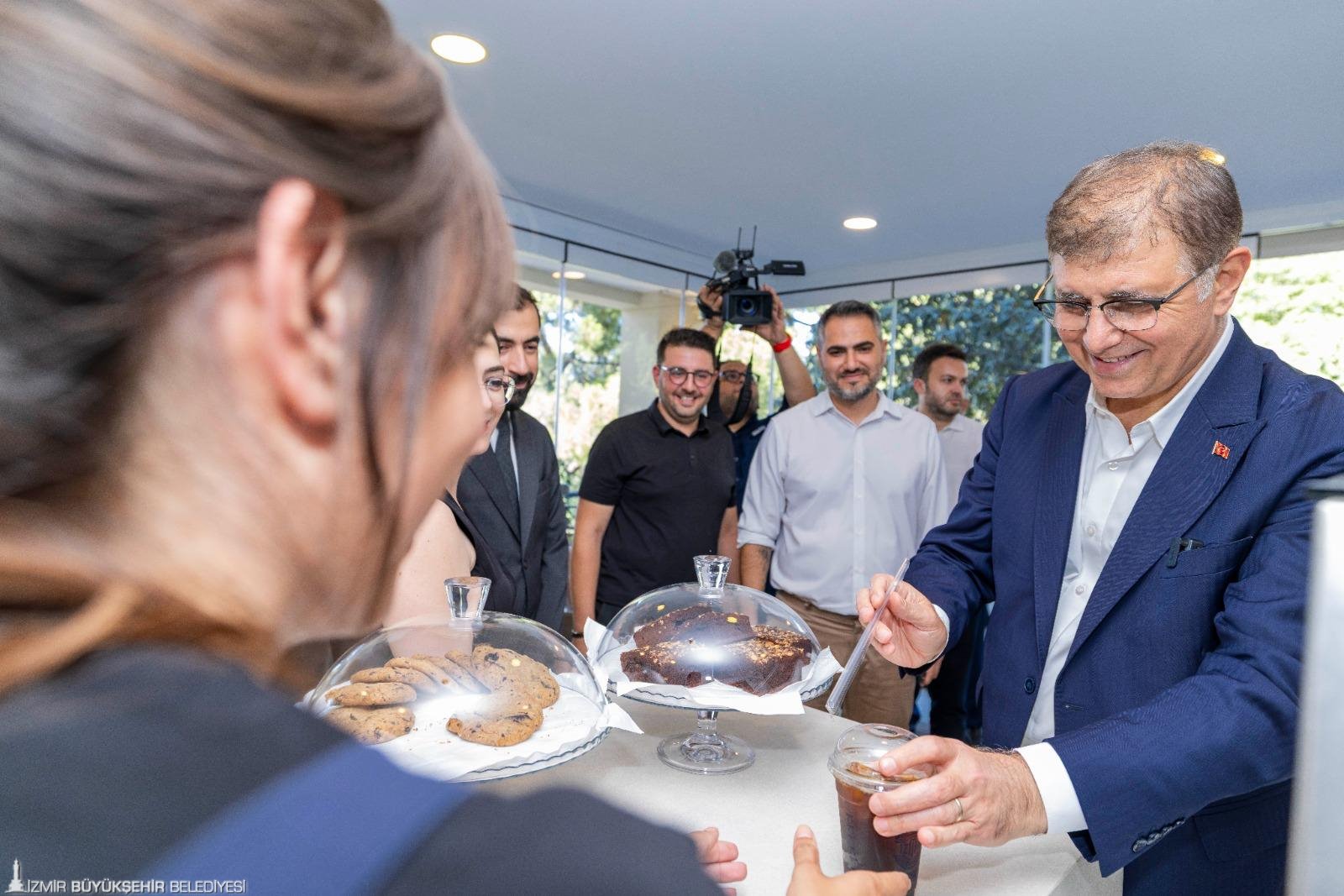 İzmir Büyükşehir Belediye Başkanı Dr. Cemil Tugay da kahvesini alarak kafeyi ve terasları gezerek gençlerle sohbet etti. Güzel İzmir Hareketi ve Grand Plaza AŞ iş birliğiyle hayata geçirilen kafeyi çok beğendiklerini belirten gençler, İzmir Büyükşehir Belediye Başkanı Dr. Cemil Tugay’a teşekkürlerini iletti.