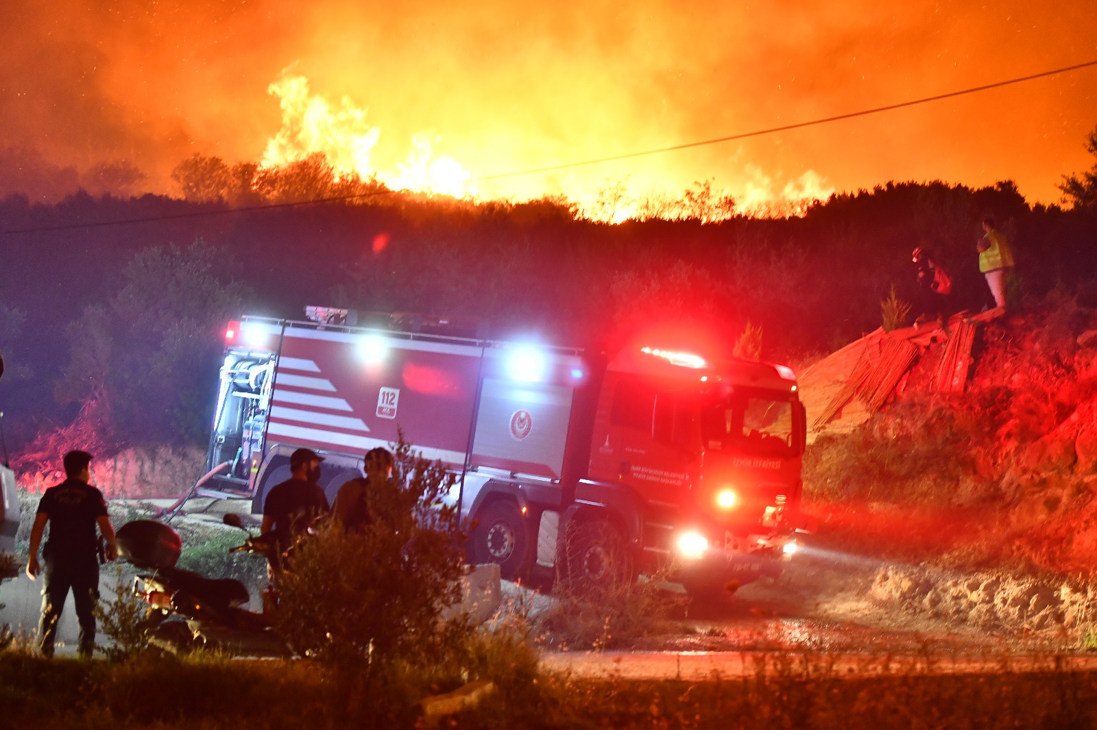 İzmir Büyükşehir Belediyesi İtfaiye Dairesi Başkanlığı’nın yanı sıra İZSU Genel Müdürlüğü, Park ve Bahçeler Dairesi Başkanlığı, Fen İşleri Dairesi Başkanlığı, Veteriner İşleri Dairesi Başkanlığı, Makine İkmal Dairesi Başkanlığı ekipleri de çok sayıda araçla sahada çalışıyor.