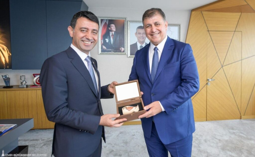 Programın ardından Önal, Başkan Tugay’a, Bayraklı’da yapılan kazılar sonucu elde edilen arkeolojik buluntulardan esinlenerek seramik sanatçısı tarafından yapılan, M.Ö 6. yüzyılda koku, parfüm, gül yağı, ilaç şişesi olarak kullanılan alabastron (vazo) hediye etti. (Haber Merkezi)